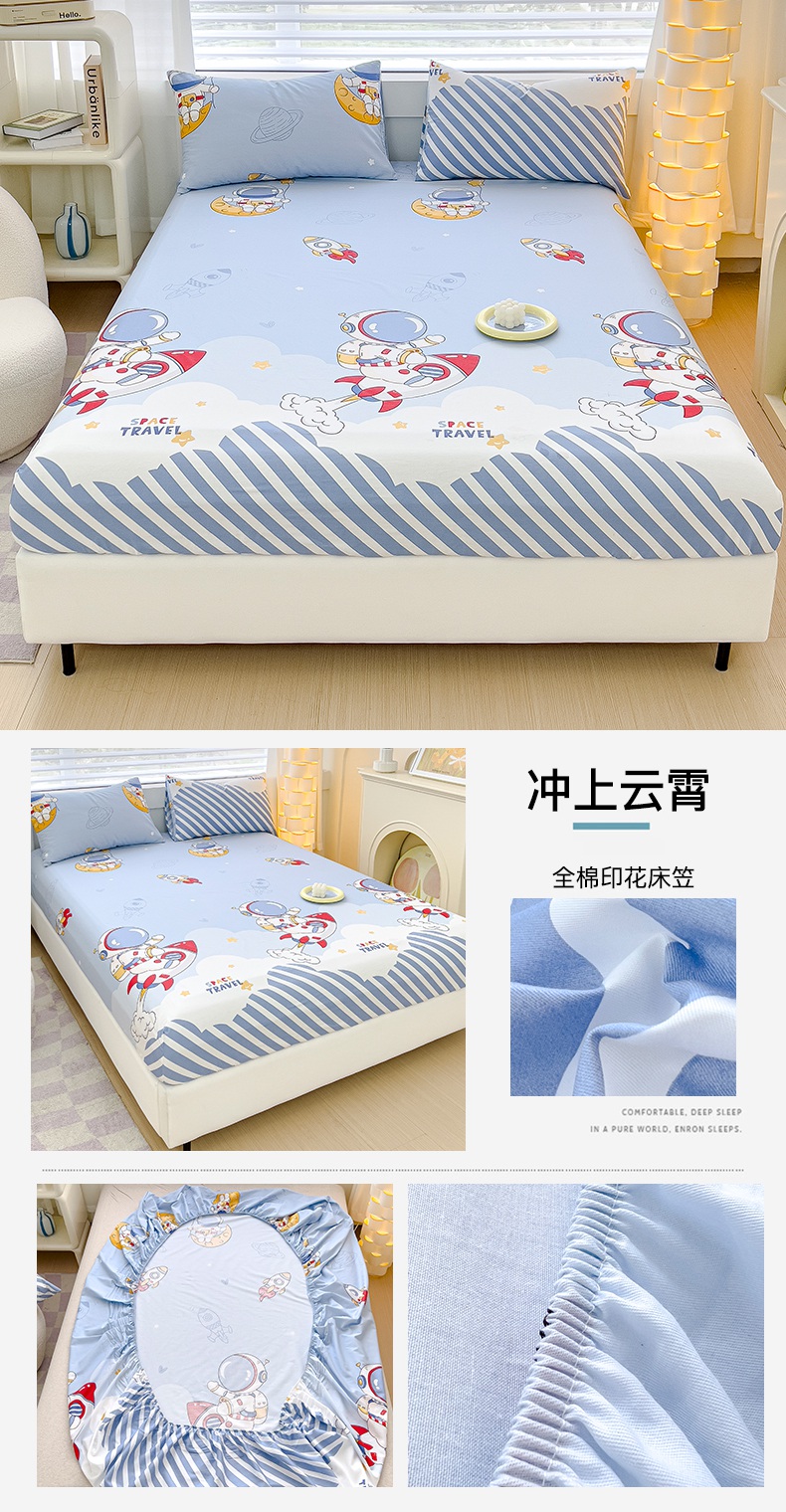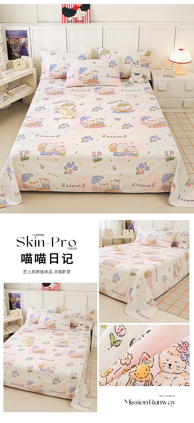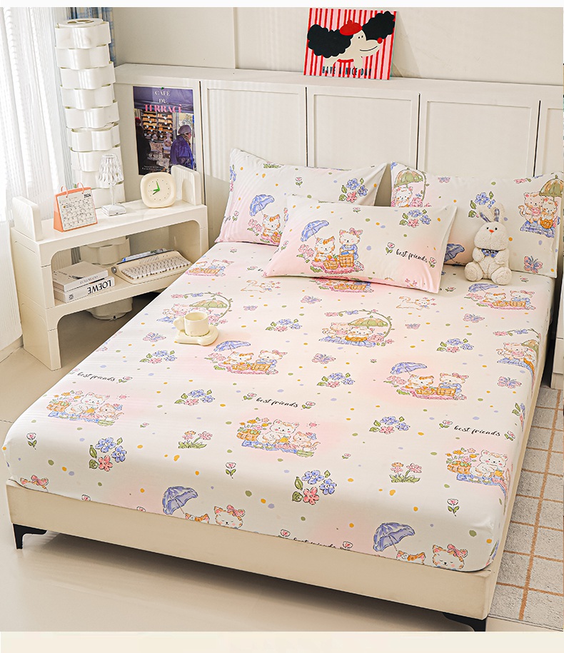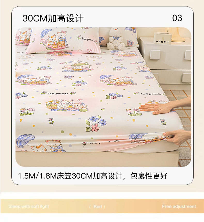 金鑫汇家纺 2025新款13070全棉好卖花型套件系列-单床笠 喵喵日记