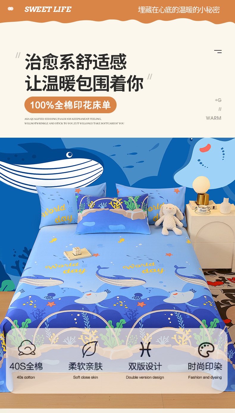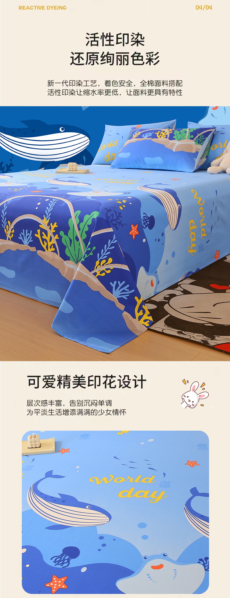 金鑫汇家纺 2025新款13070全棉好卖花型套件系列-单床单(花型更好卖,面料更厚实,退货率低) 海族馆
