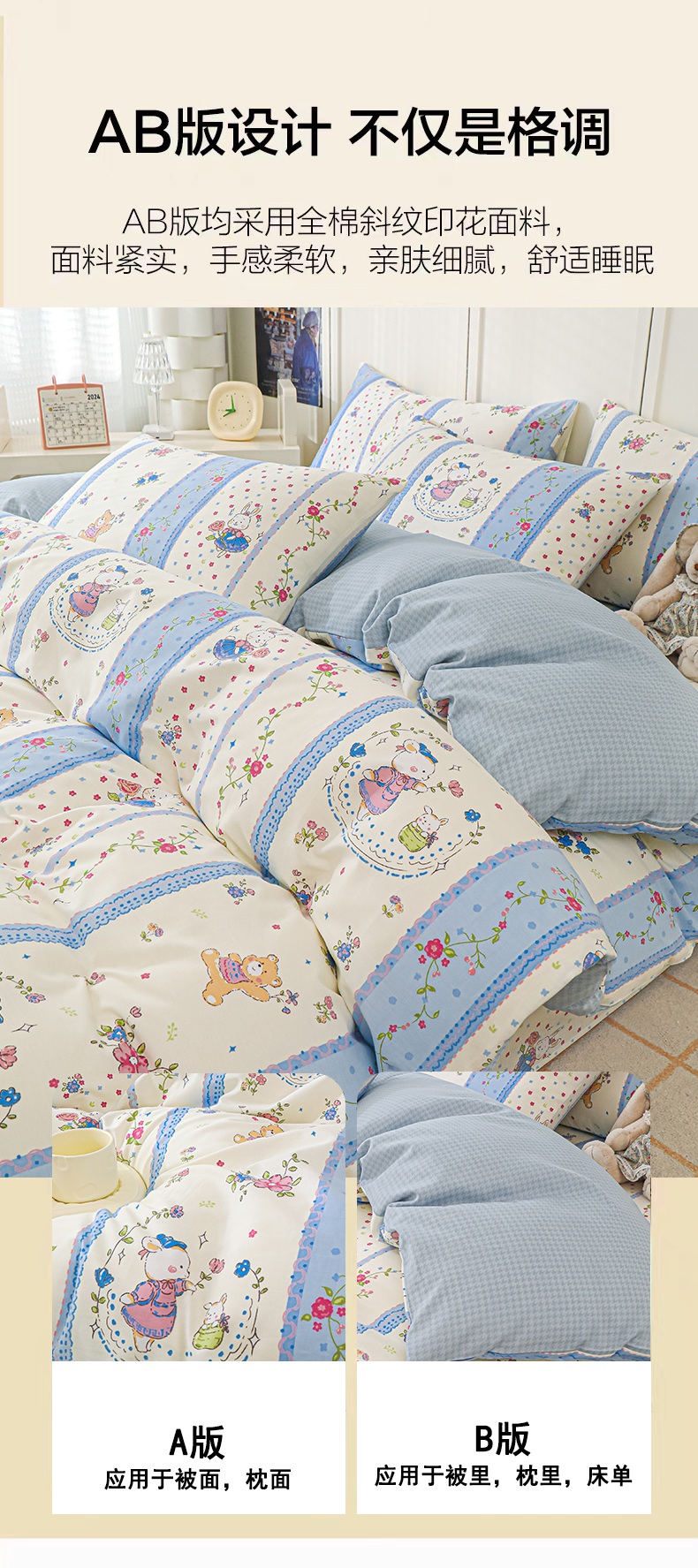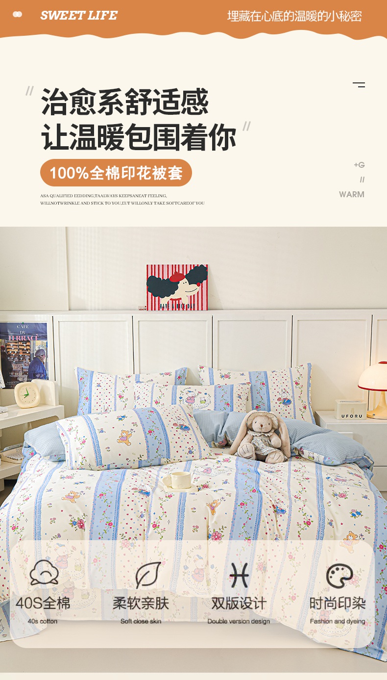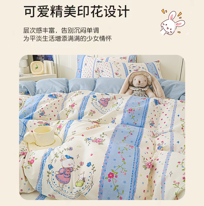 金鑫汇家纺 2025新款13070全棉好卖花型套件系列-单被套 快乐萌兔