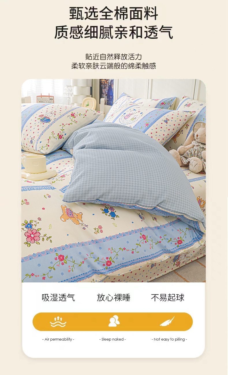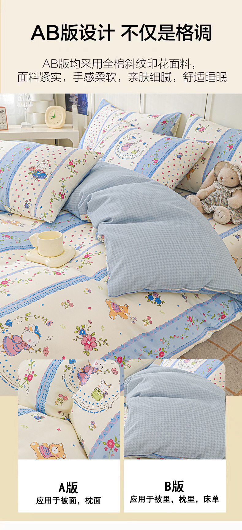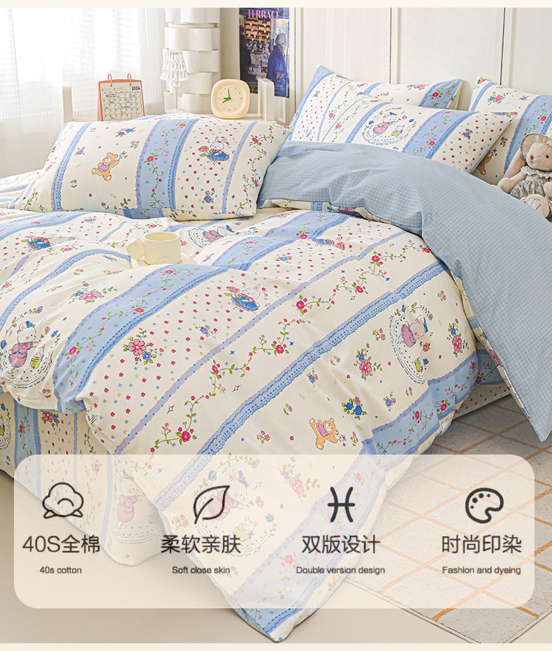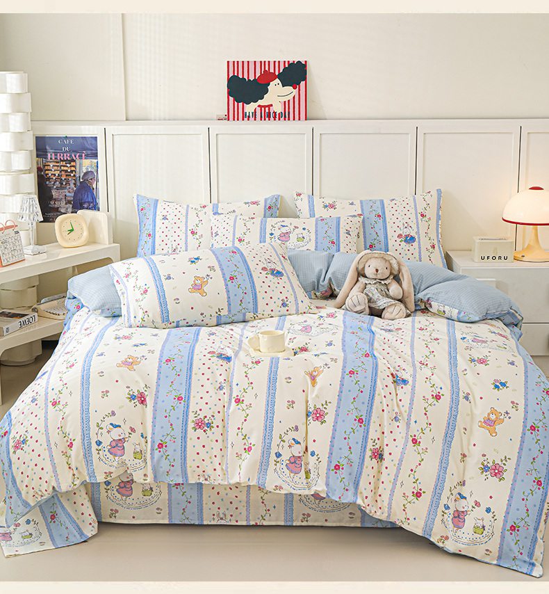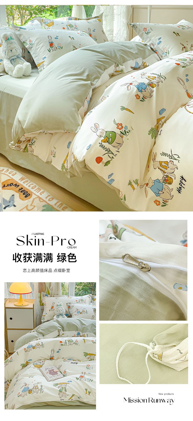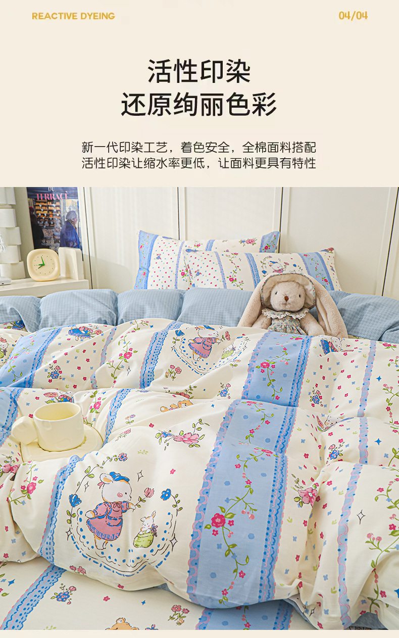 当前位置: 91家纺网 > 商品网购 > 床品套件 > 四件套 > 全棉普通四件套 > 金鑫汇家纺 2025新款13070全棉好卖花型套件系列-四件套 快乐萌兔