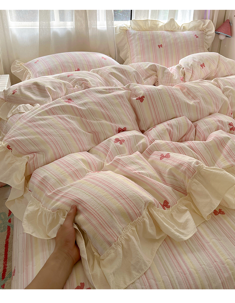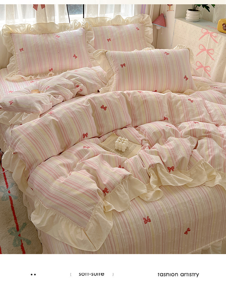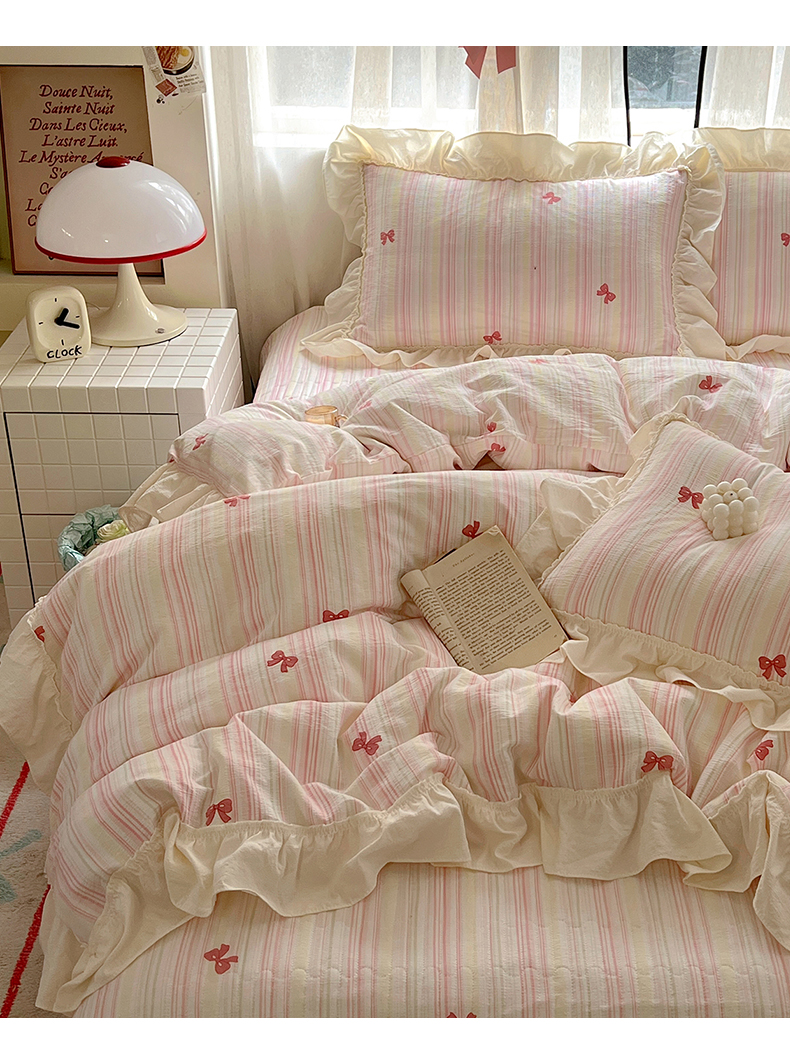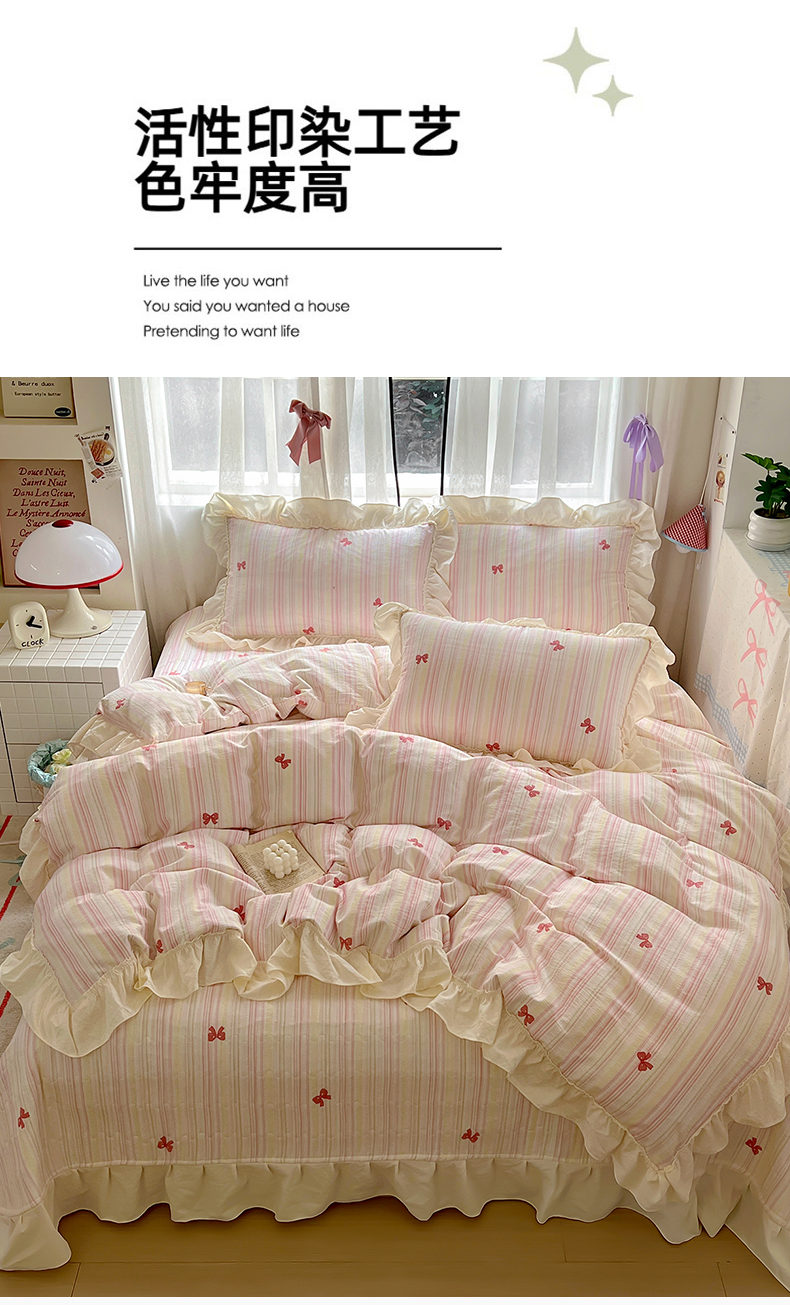 (总)美梦家纺 2026春夏新款全棉花边全棉床盖四件套系列,芊芊花海,波点蝴蝶结·咖,春暖花开,花悦,凯蒂乐园,南瓜甜心,微微安·粉,香叶之恋,小精灵