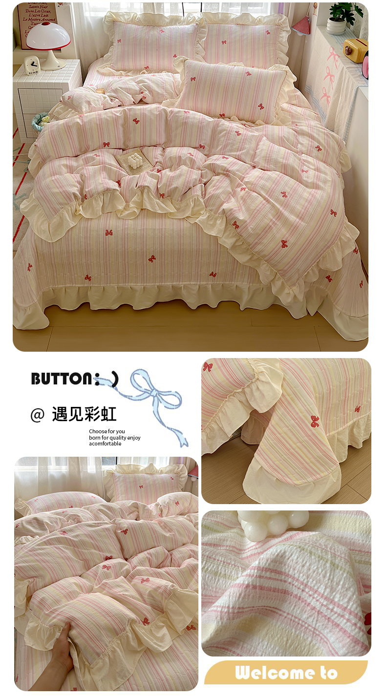 商品名称:美梦家纺2025新款皱皱纱花边被套床盖四件套 遇见彩虹
