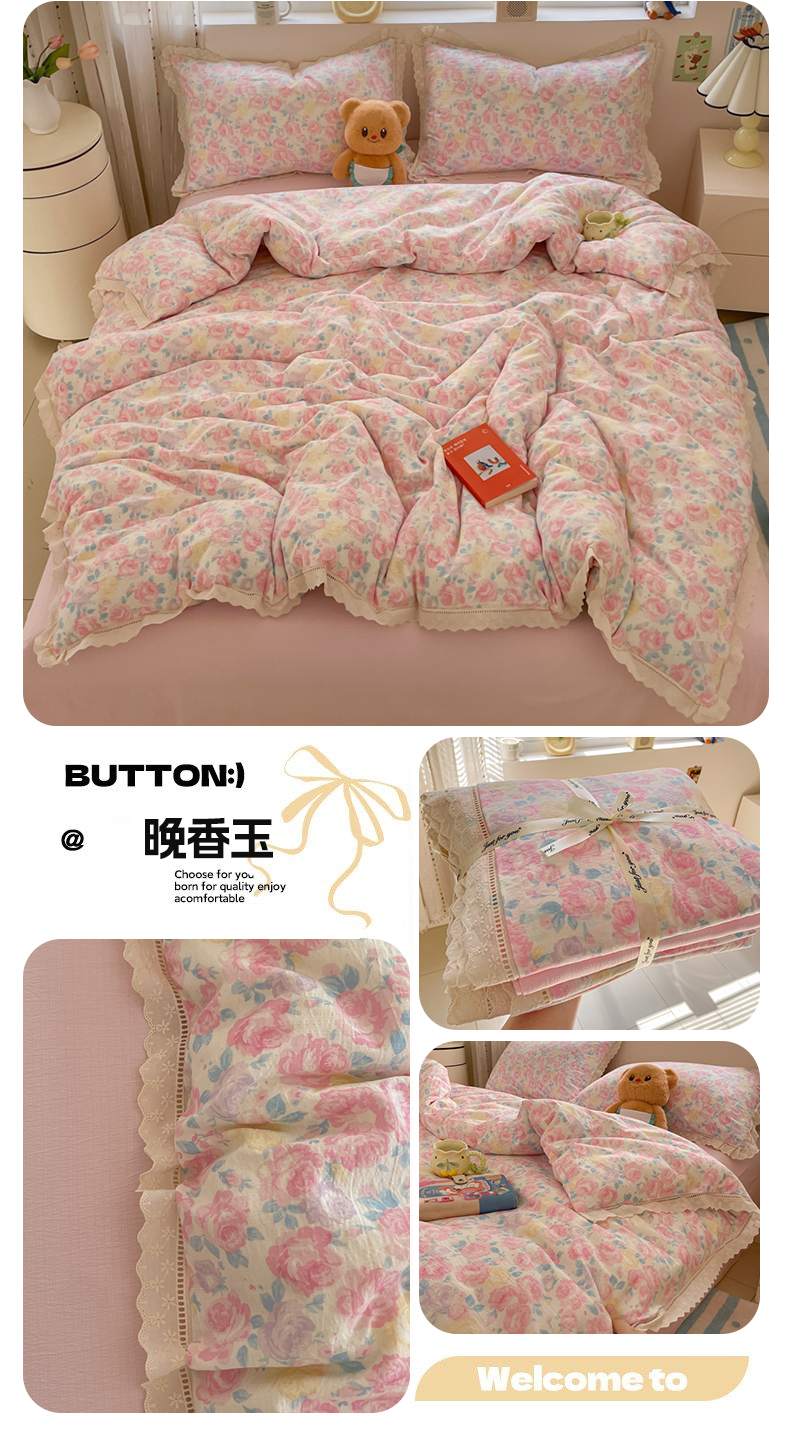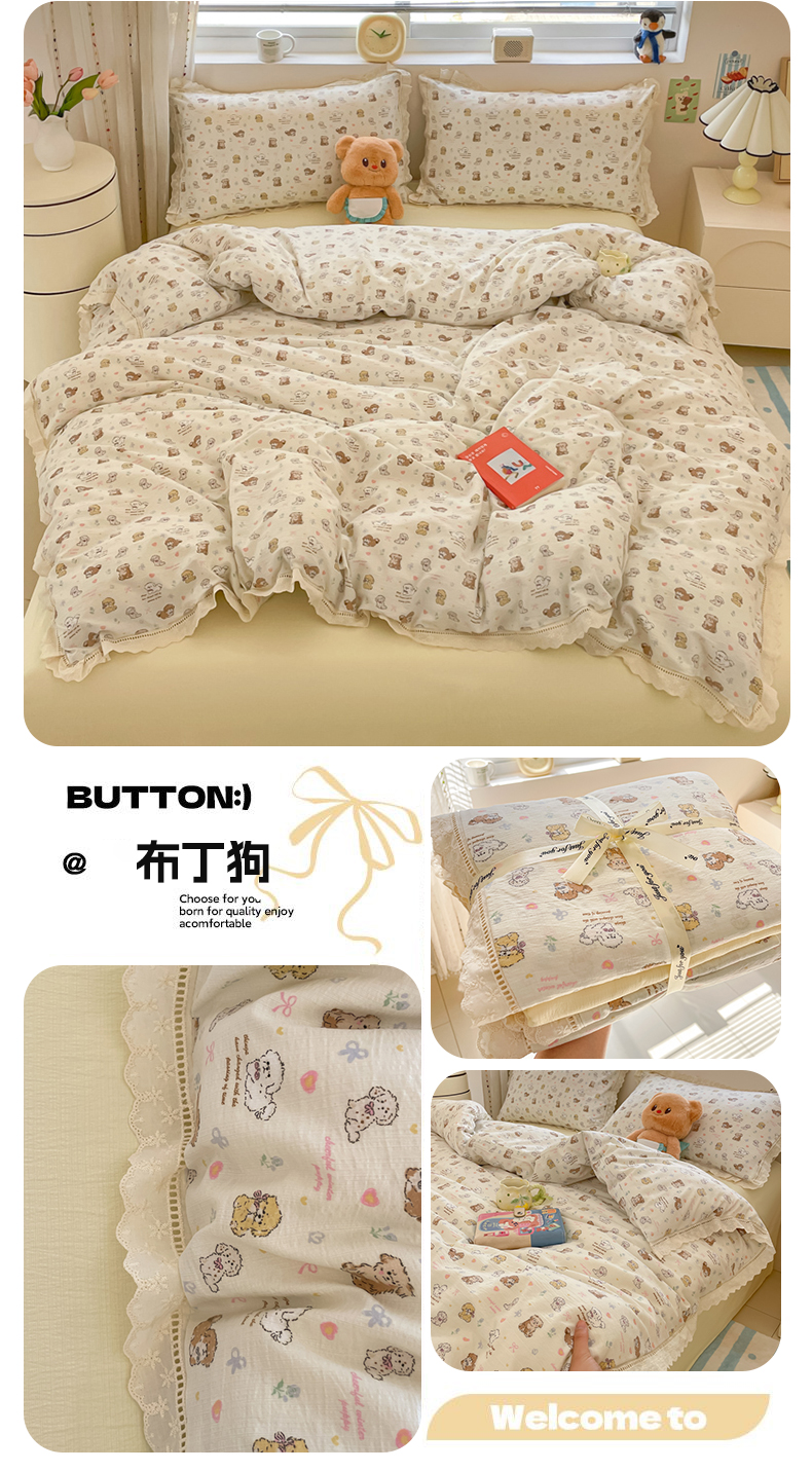 (总)玉海棠家纺 2025新款云感双层纱花边四件套,花边-布丁狗,花边-初恋,花边-米奇,花边-茉片,花边-莫奈,花边-诺言兔兔,花边-晴天,花边-桃桃女孩,花边-桃夭,花边-甜梦,花边-晚香玉,花边-雾漫春日,花边-鲜花小兔,花边-小熊蛋糕,花边-芝士奶酪,花边格格西高地