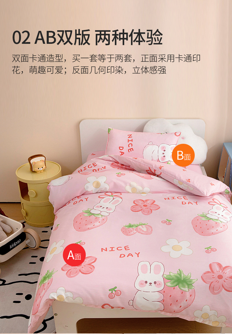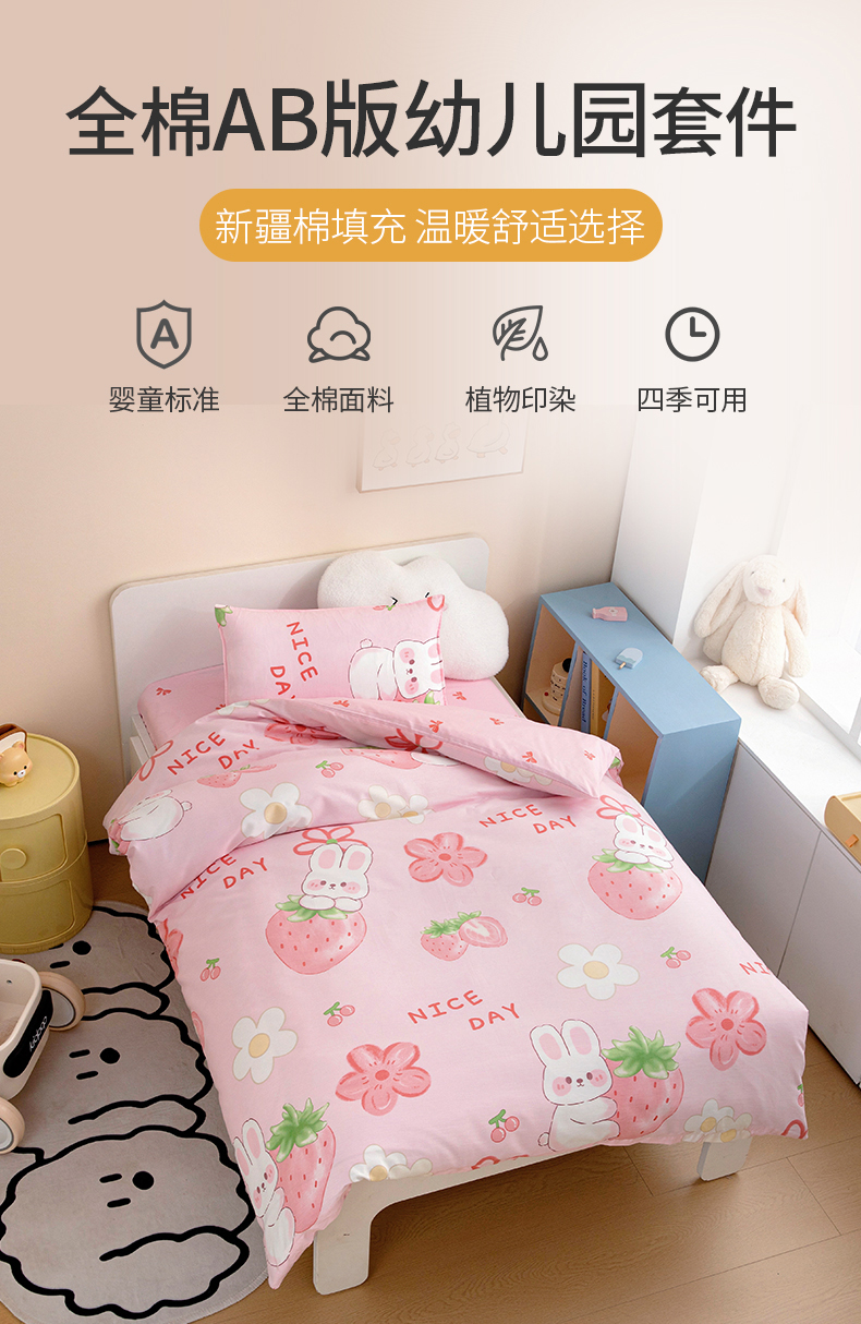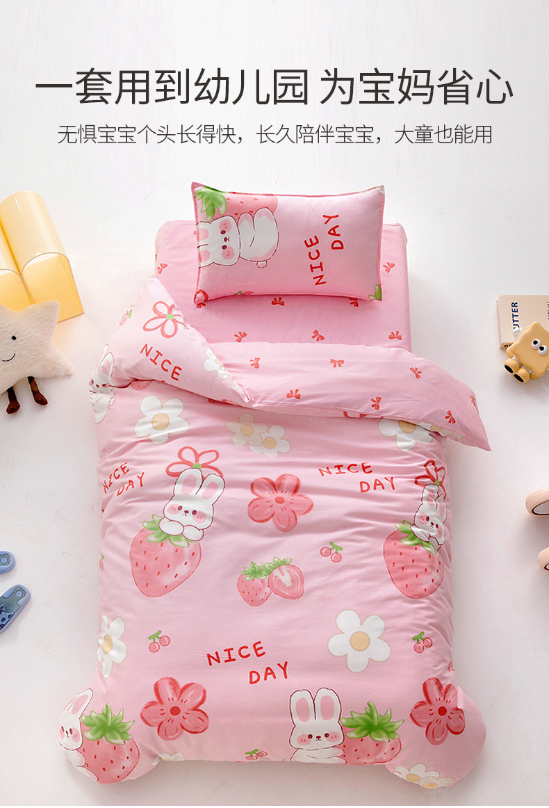当前位置: 91家纺网 > 商品网购 > 床品套件 > 多件套 > 多件套 > 2025年新款幼儿园全棉被子三件套宝宝入园纯棉六件套被褥午睡被套草莓兔子
