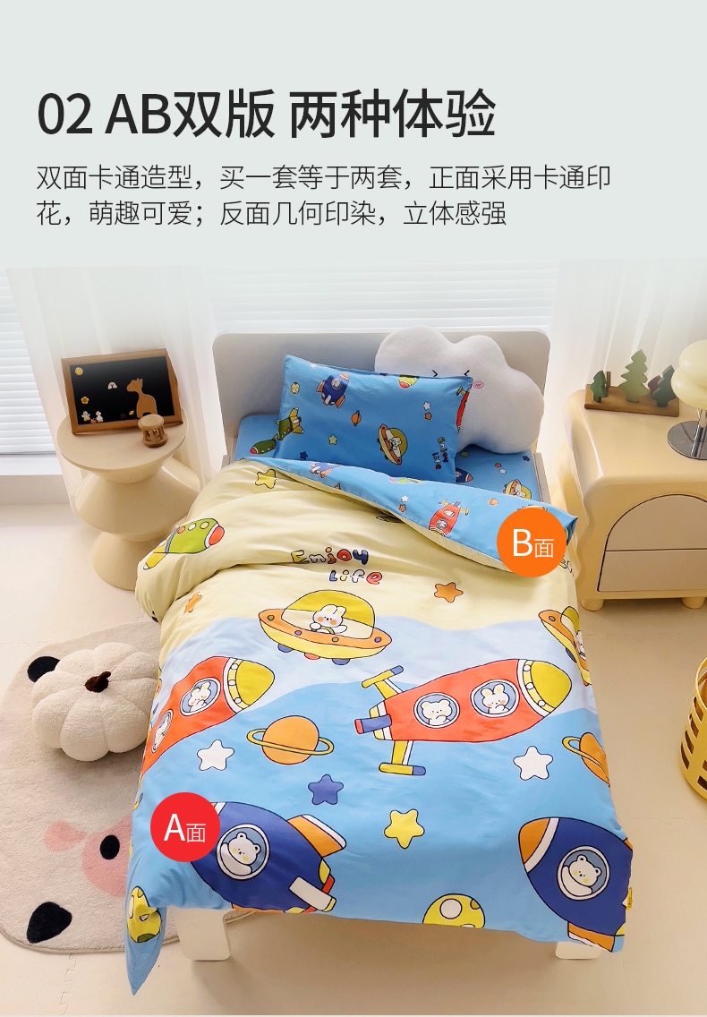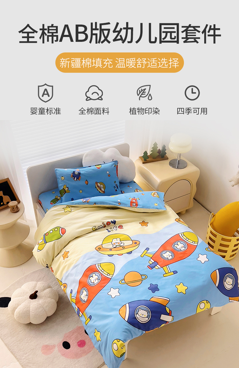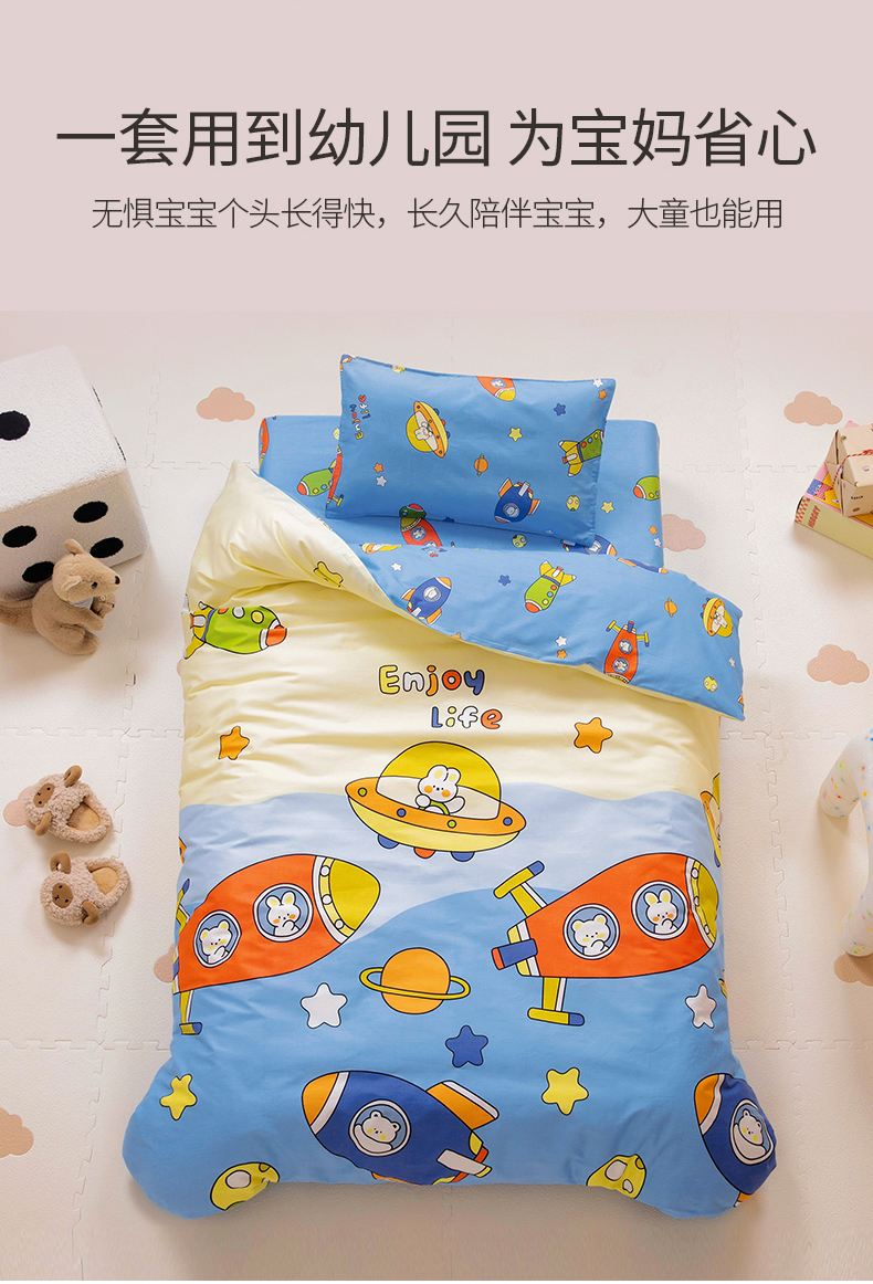当前位置: 91家纺网 > 商品网购 > 床品套件 > 多件套 > 多件套 > 2025年新款幼儿园全棉被子三件套宝宝入园纯棉六件套被褥午睡被套星际之旅