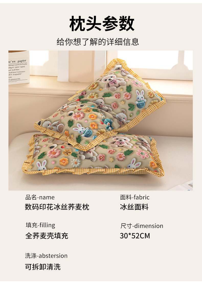 商品名称:(总)九州枕芯 2025新款5D数码印花小熊纯荞麦枕