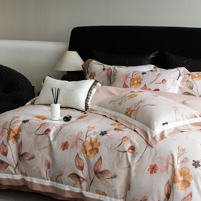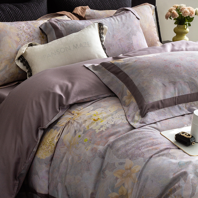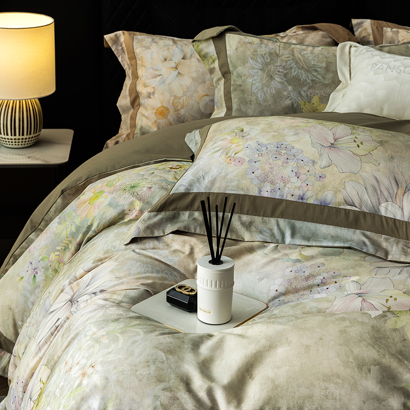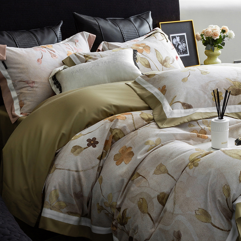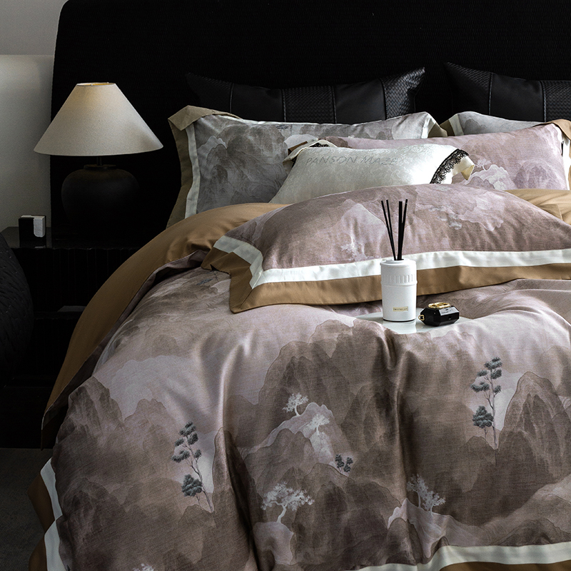 当前位置: 91家纺网 > 商品网购 > 床品套件 > 四件套 > 长绒棉四件套 > 威克凯丽 2024新款长绒棉数码印花100S磨毛双拼四件套 远山如黛-B橄榄咖C奶白