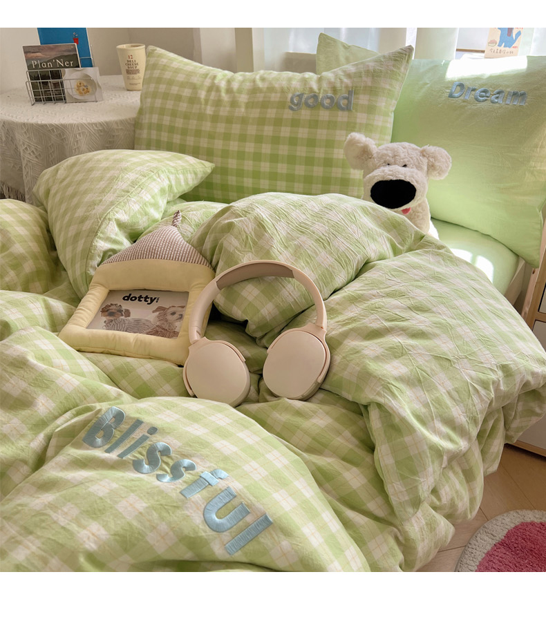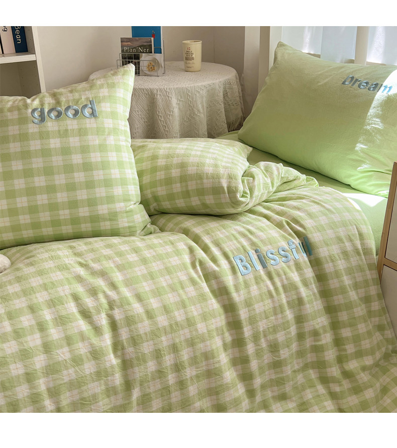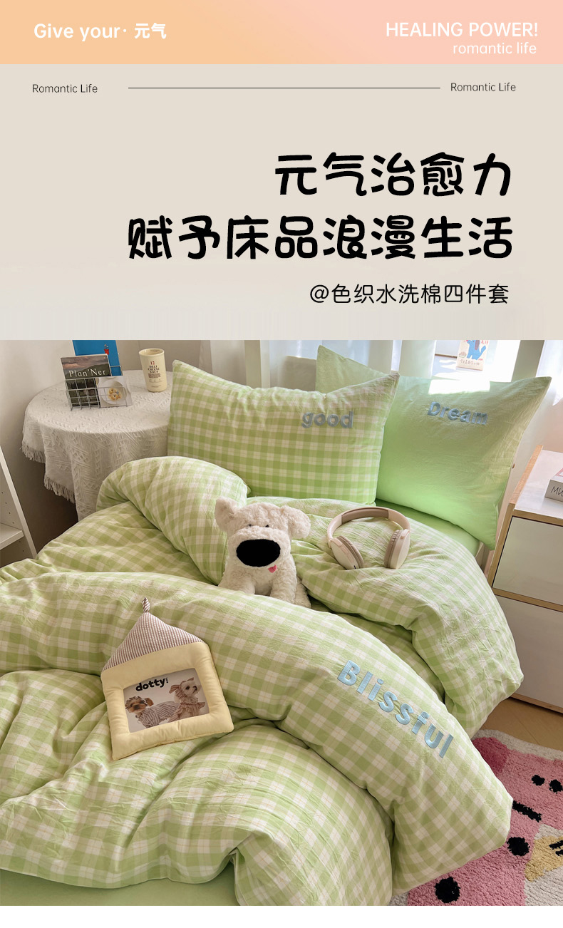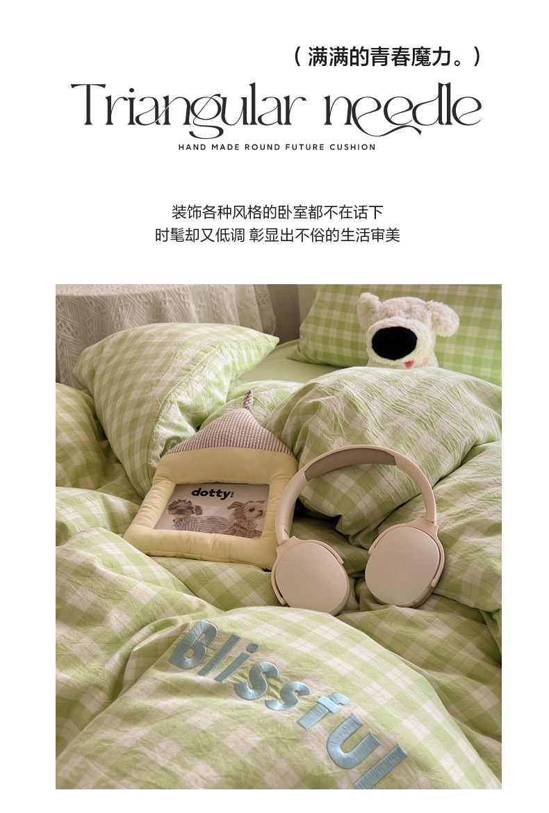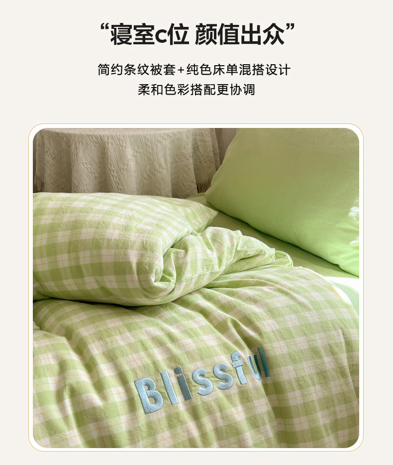 当前位置: 91家纺网 > 商品网购 > 床品套件 > 四件套 > 水洗棉四件套 > 丽涵家纺 2025新款全棉纯棉色织水洗棉刺绣三件套四件套 尚格-绿