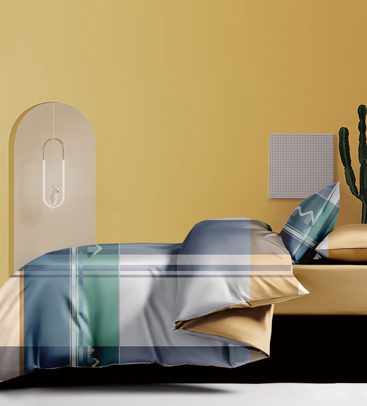 威克凯丽2023新款重磅七彩大提花纯竹纤维软凉席三件套 巴塞罗那,巴塞罗那