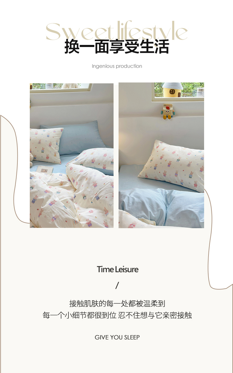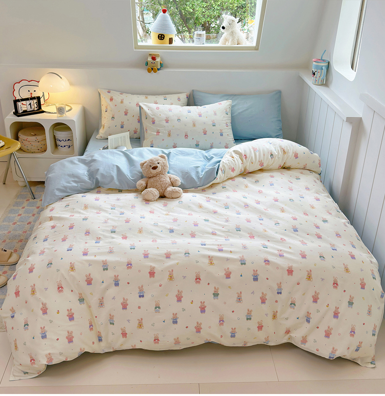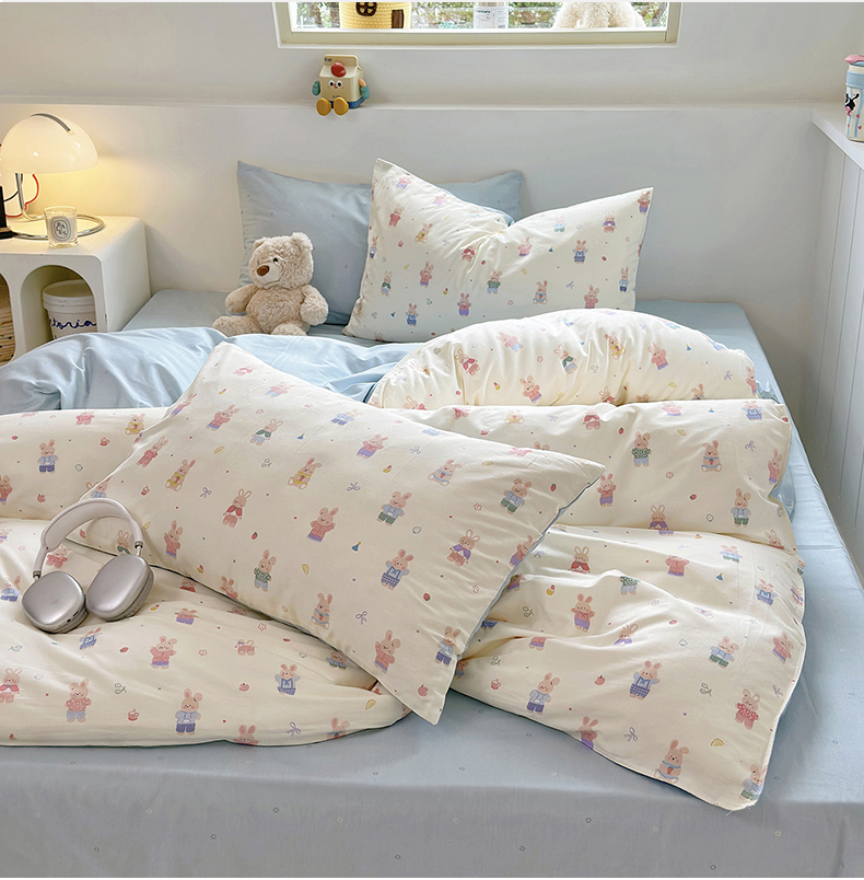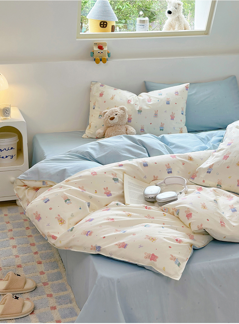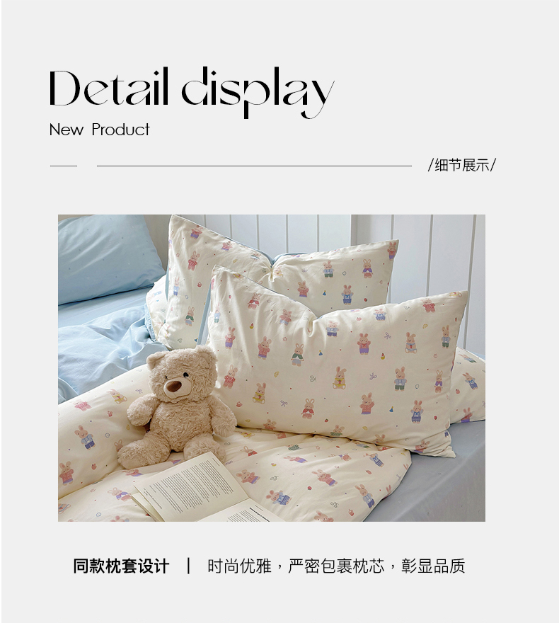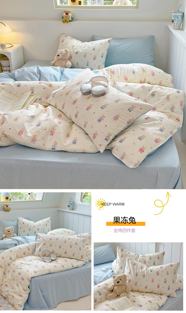 当前位置: 91家纺网 > 商品网购 > 床品套件 > 四件套 > 全棉普通四件套 > 麦伦家居 2025春夏新款全棉纯棉斜纹40s13372系列-小清新卡通 果冻兔