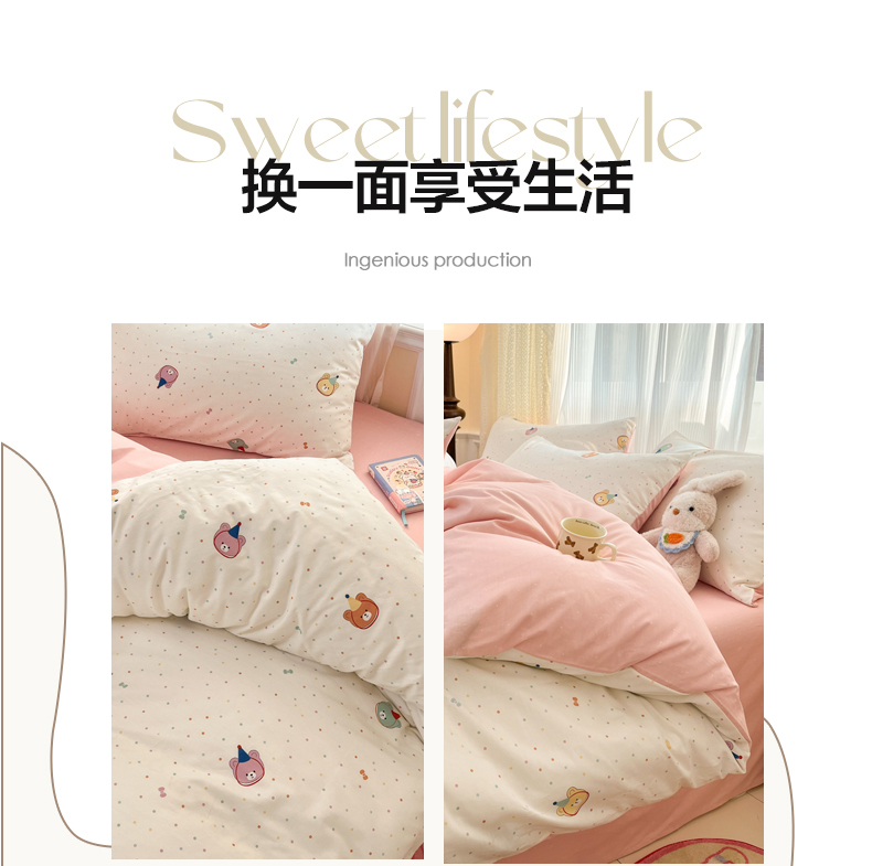 当前位置: 91家纺网 > 商品网购 > 床品套件 > 四件套 > 全棉普通四件套 > 麦伦家居 2025春夏新款全棉纯棉斜纹40s13372系列-小清新卡通 泡泡熊