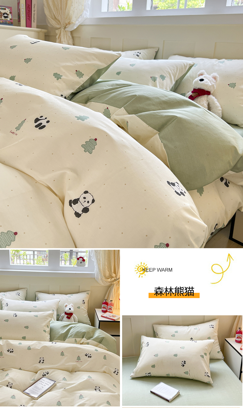 当前位置: 91家纺网 > 商品网购 > 床品套件 > 四件套 > 全棉普通四件套 > 麦伦家居 2025春夏新款全棉纯棉斜纹40s13372系列-小清新卡通 熊猫森林