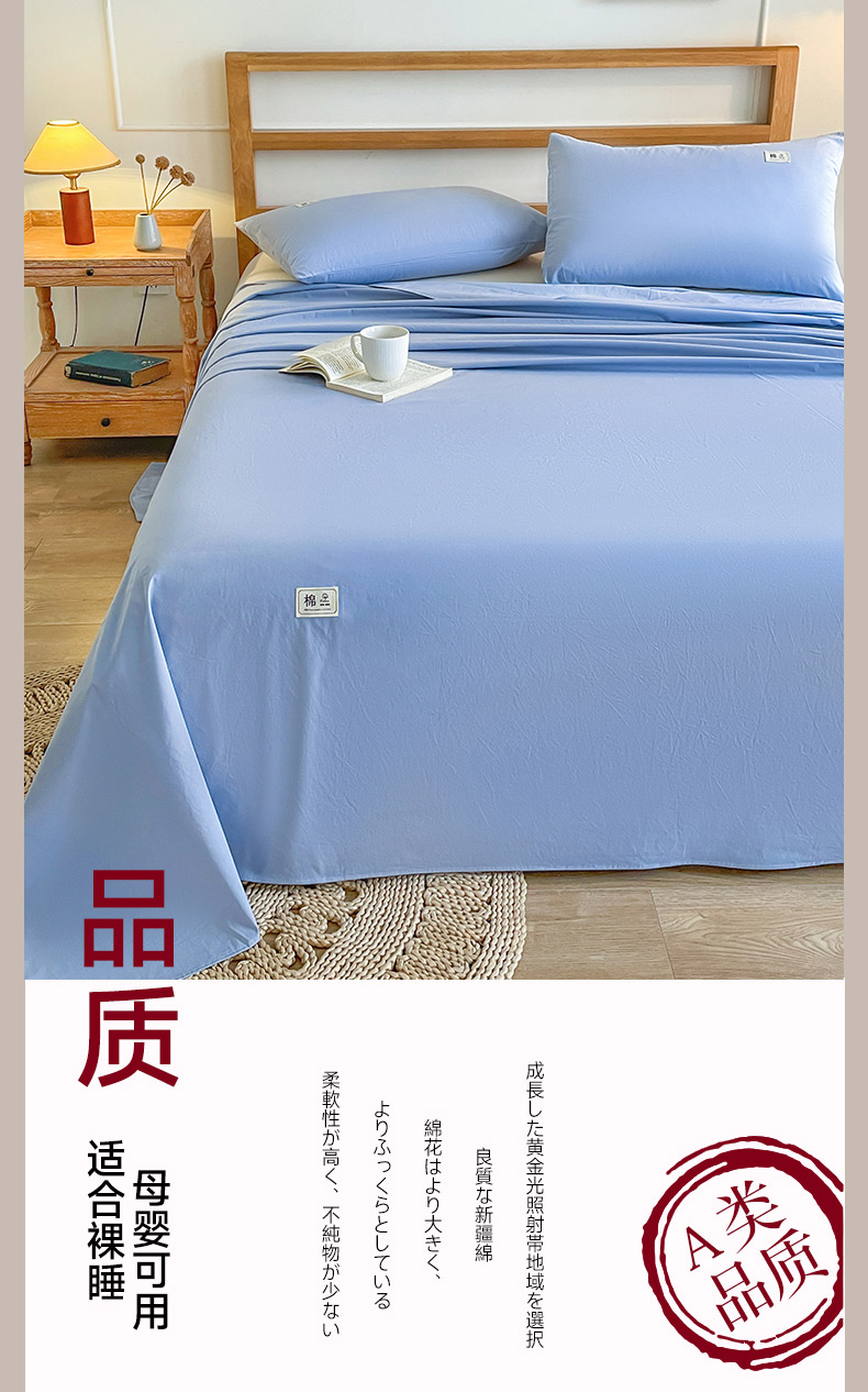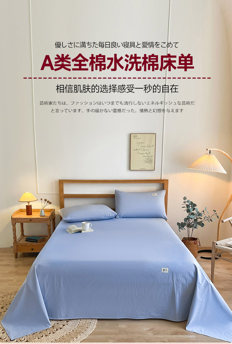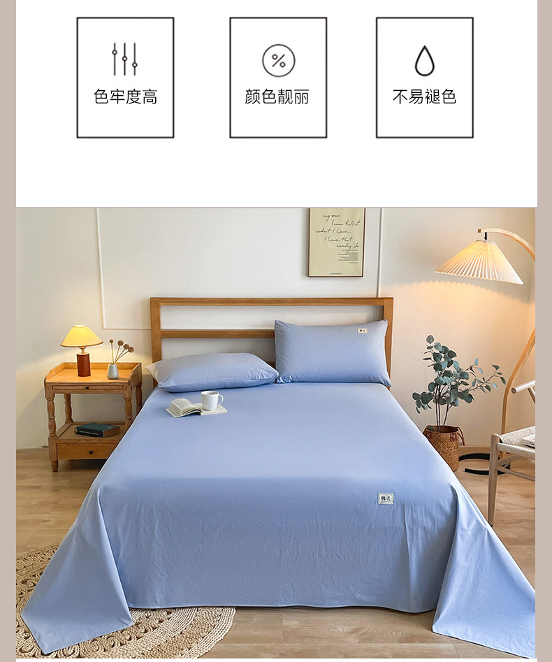 商品名称:暖芯优选 2025新款40S13376纯色全棉水洗棉单品系列床单单件-单床单 天蓝
