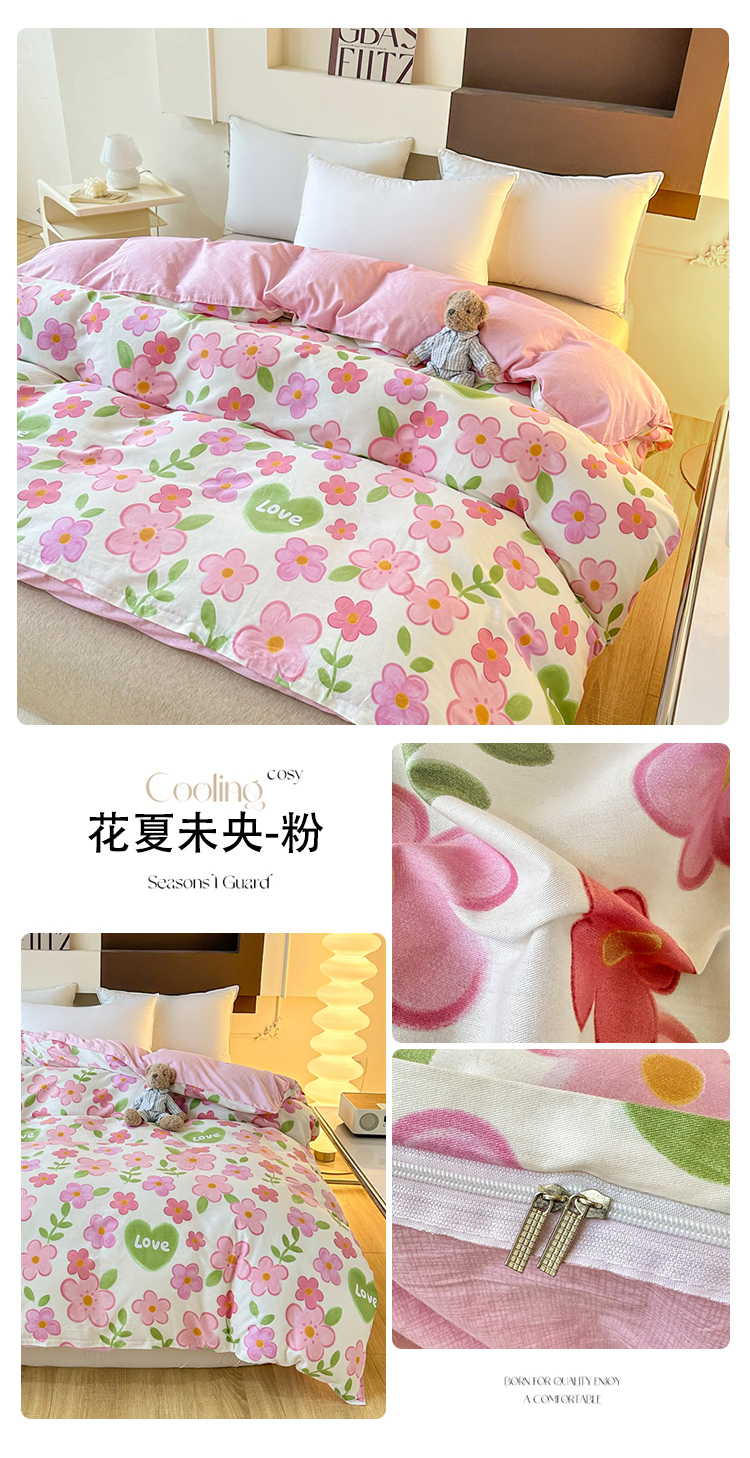 小叮当家纺仓储工厂店 (爆款花型 长期款 不断货)2025年新款小清新印花条纹卡通花卉纯棉全棉单品系列--单被套 馨香花季