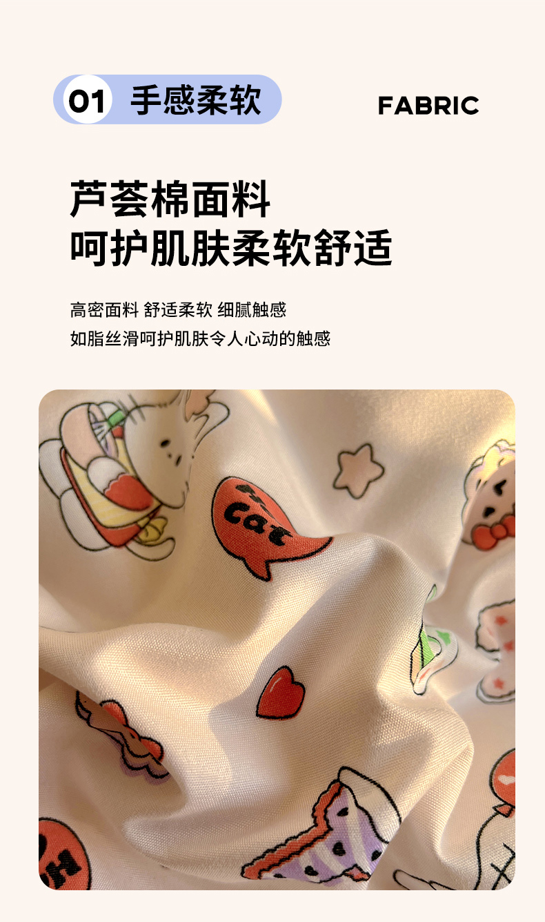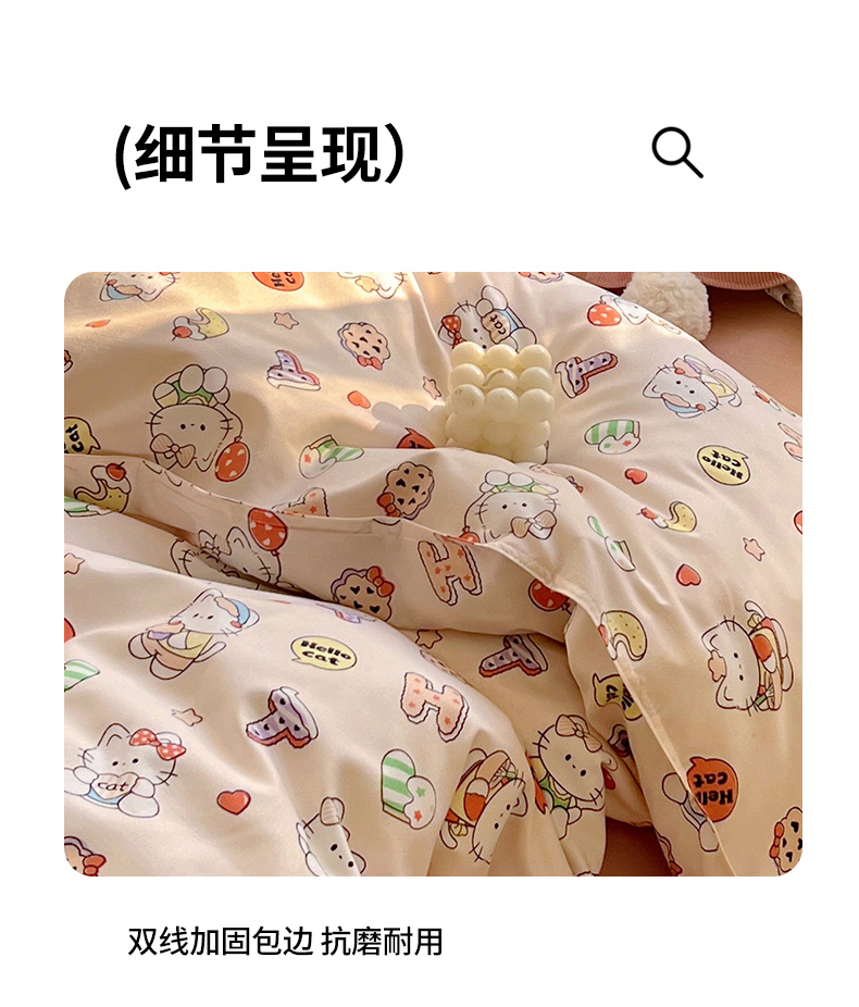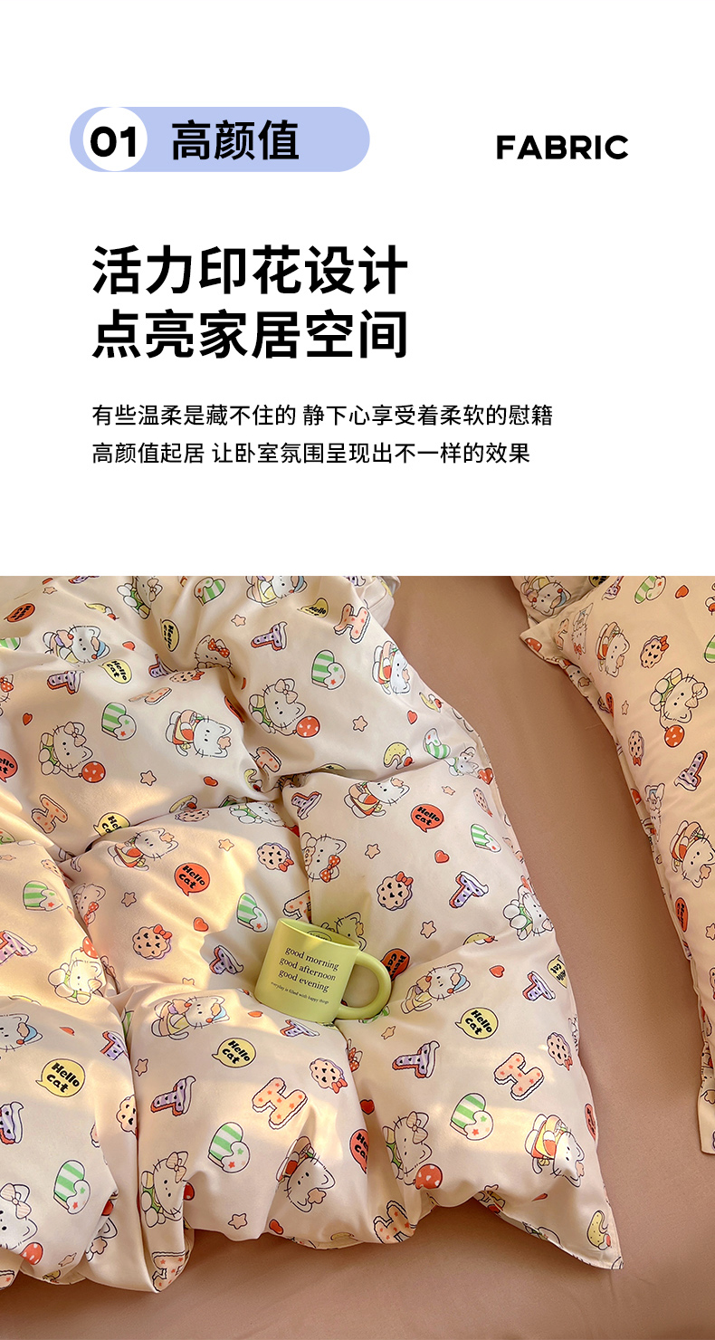 商品名称:宏源家纺 2025新款芦荟棉印花亲肤四件套 萌萌猫粉