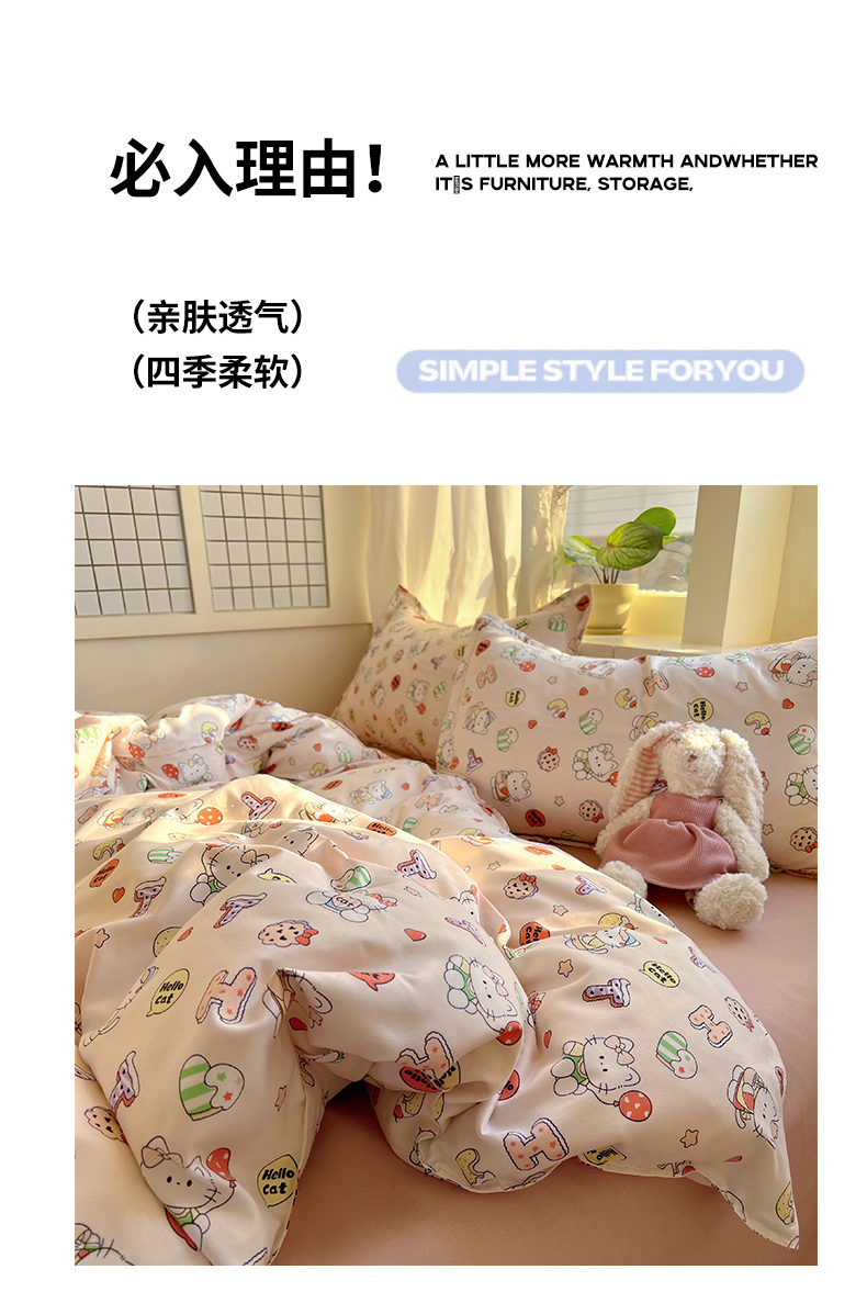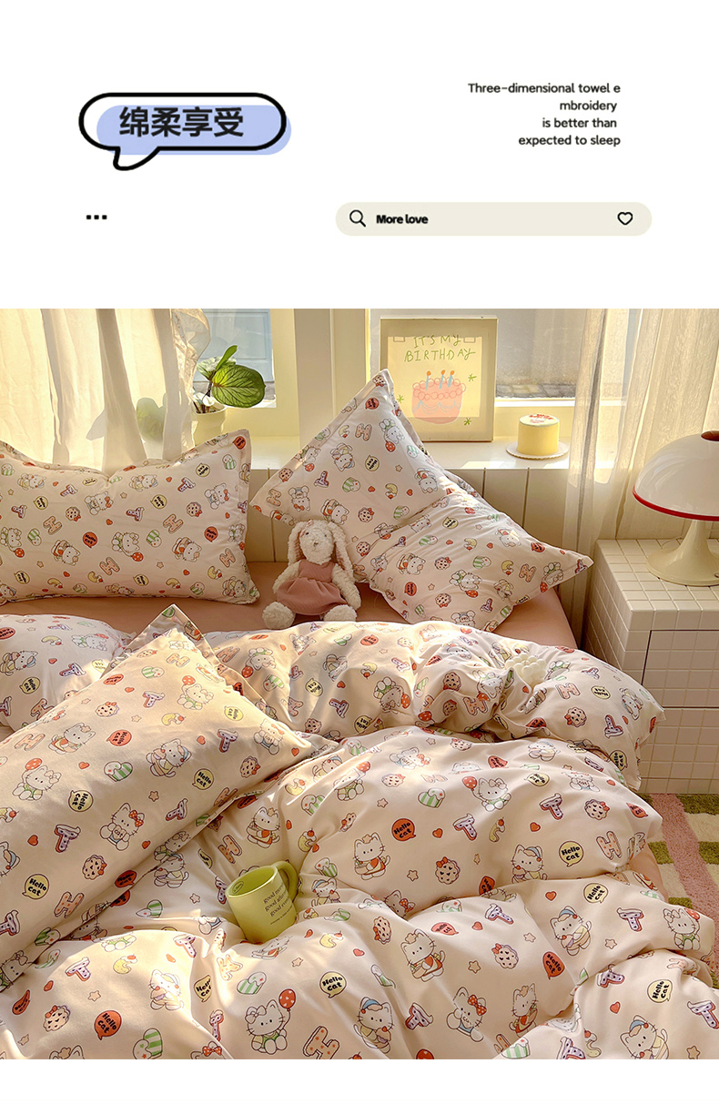 (总)宏源家纺 2025新款芦荟棉印花亲肤四件套,花园熊,快乐玩伴,萌萌猫粉,萌萌猫灰,甜品派对-蓝,甜品派对-玉,小猫日记,小新灰,小新蓝,熊仔仔