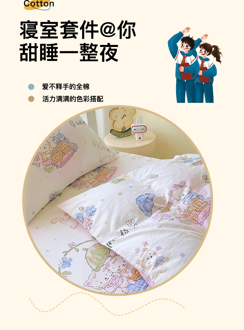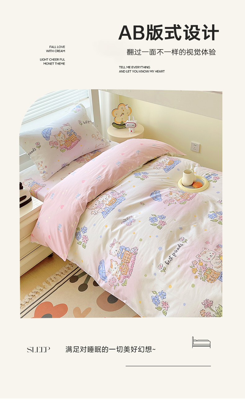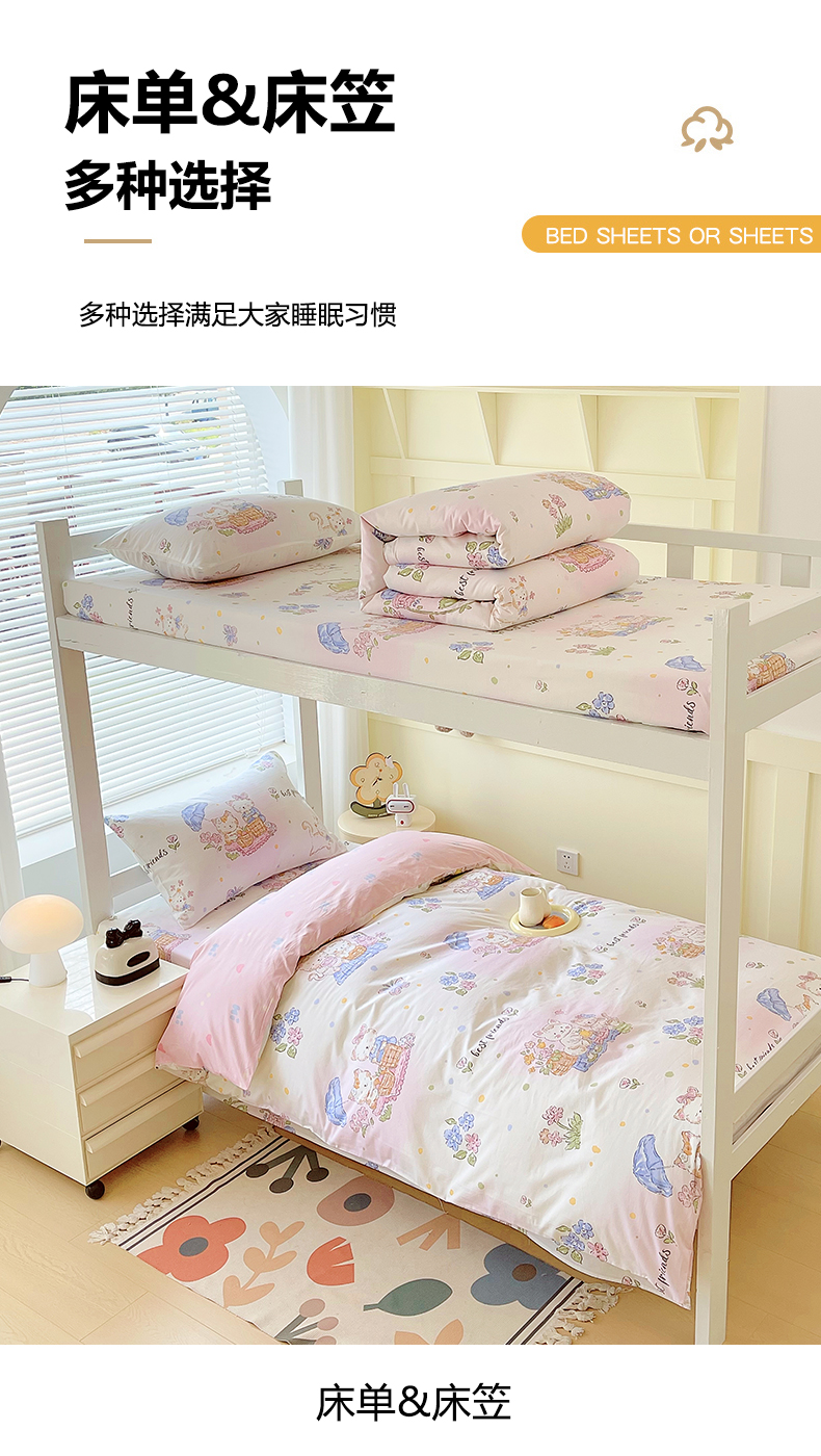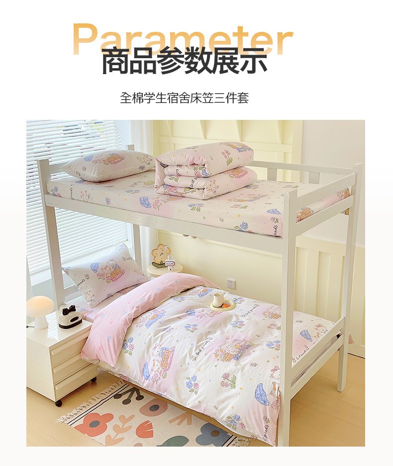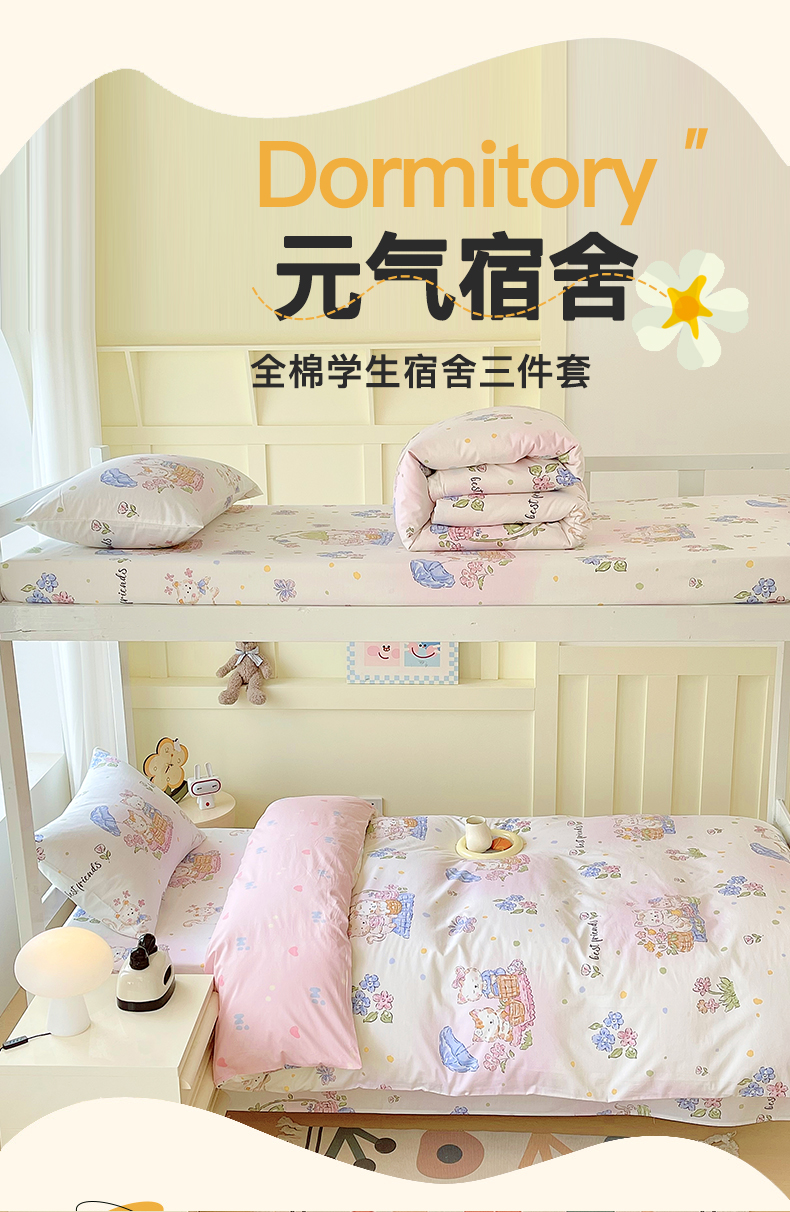当前位置: 91家纺网 > 商品网购 > 床品套件 > 三件套 > 金鑫汇家纺 2025新款全棉学生宿舍三件套四件套系列 奶油粉