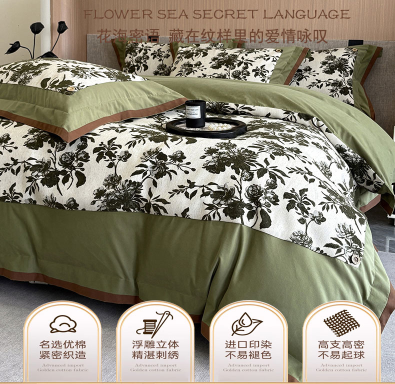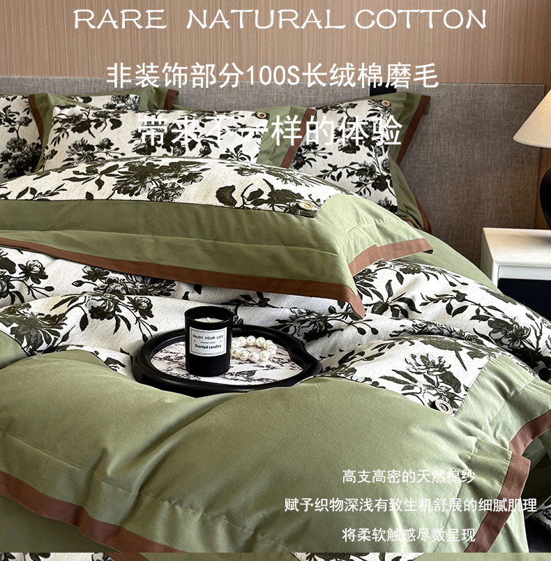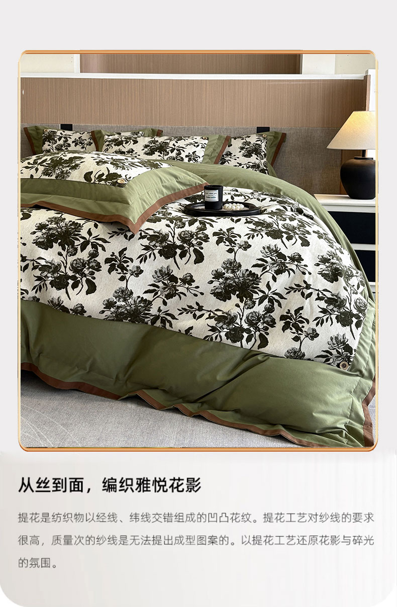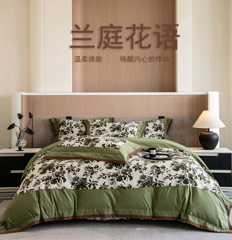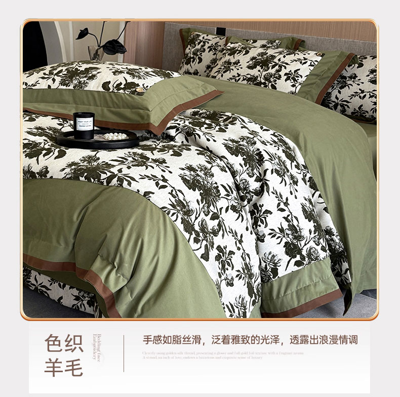 商品名称:蒂爵 2025新款A版羊毛混纺、b版新疆长绒棉时尚秋冬四件套-兰亭花语 兰亭花语-绿