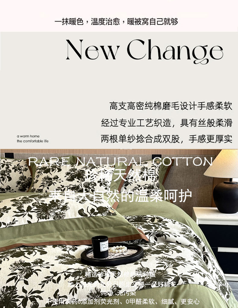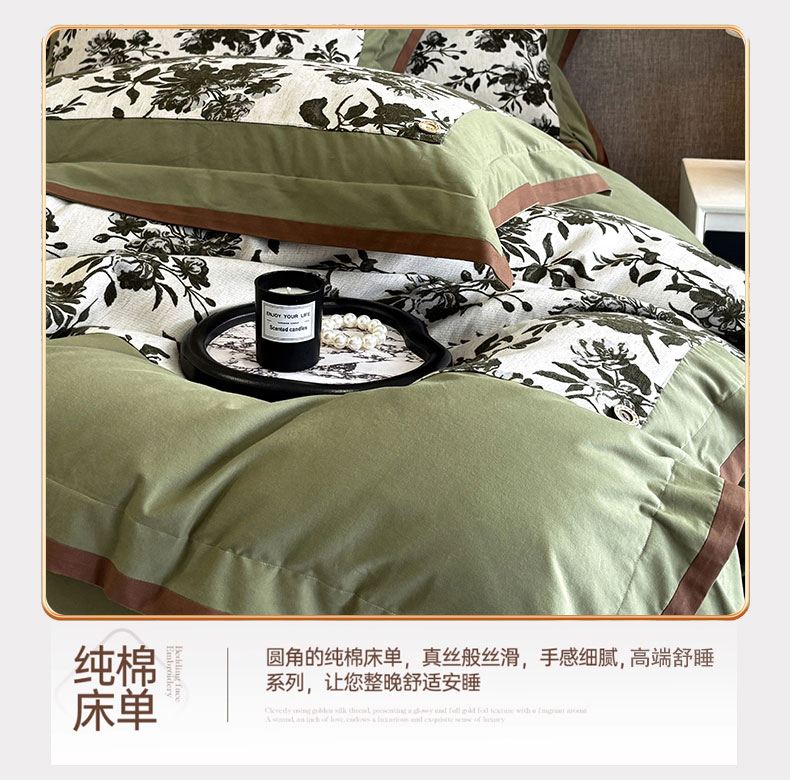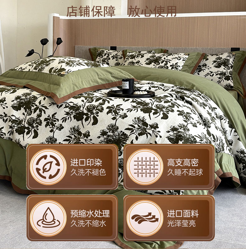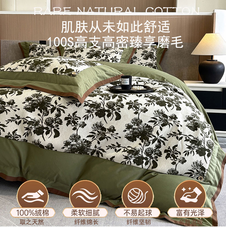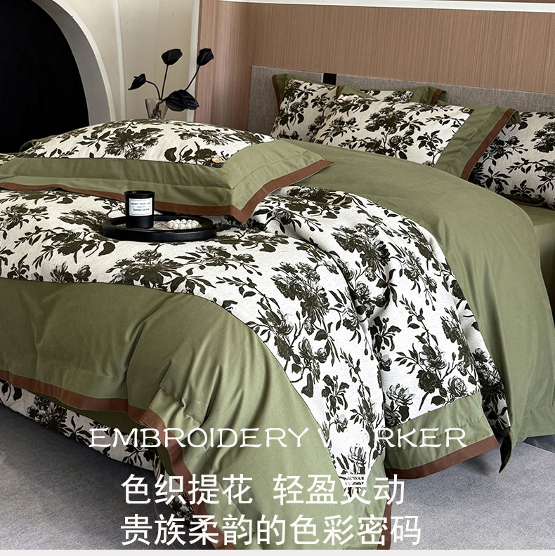 商品名称:蒂爵 2025新款A版羊毛混纺、b版新疆长绒棉时尚秋冬四件套-兰亭花语 兰亭花语-绿