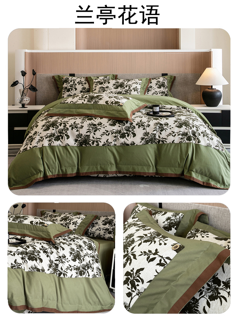 蒂爵 2025新款A版羊毛混纺、b版新疆长绒棉时尚秋冬四件套-兰亭花语 兰亭花语-绿