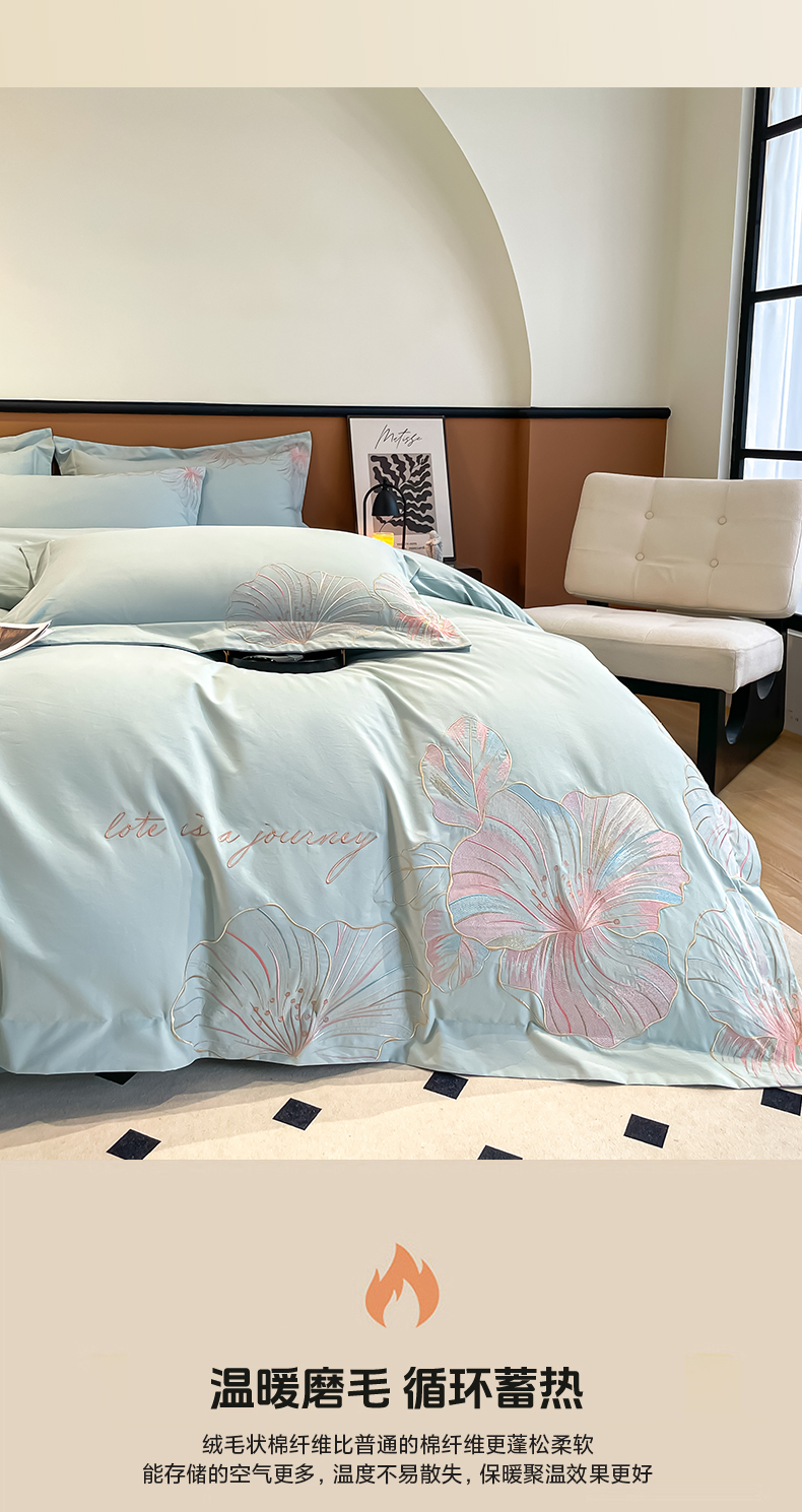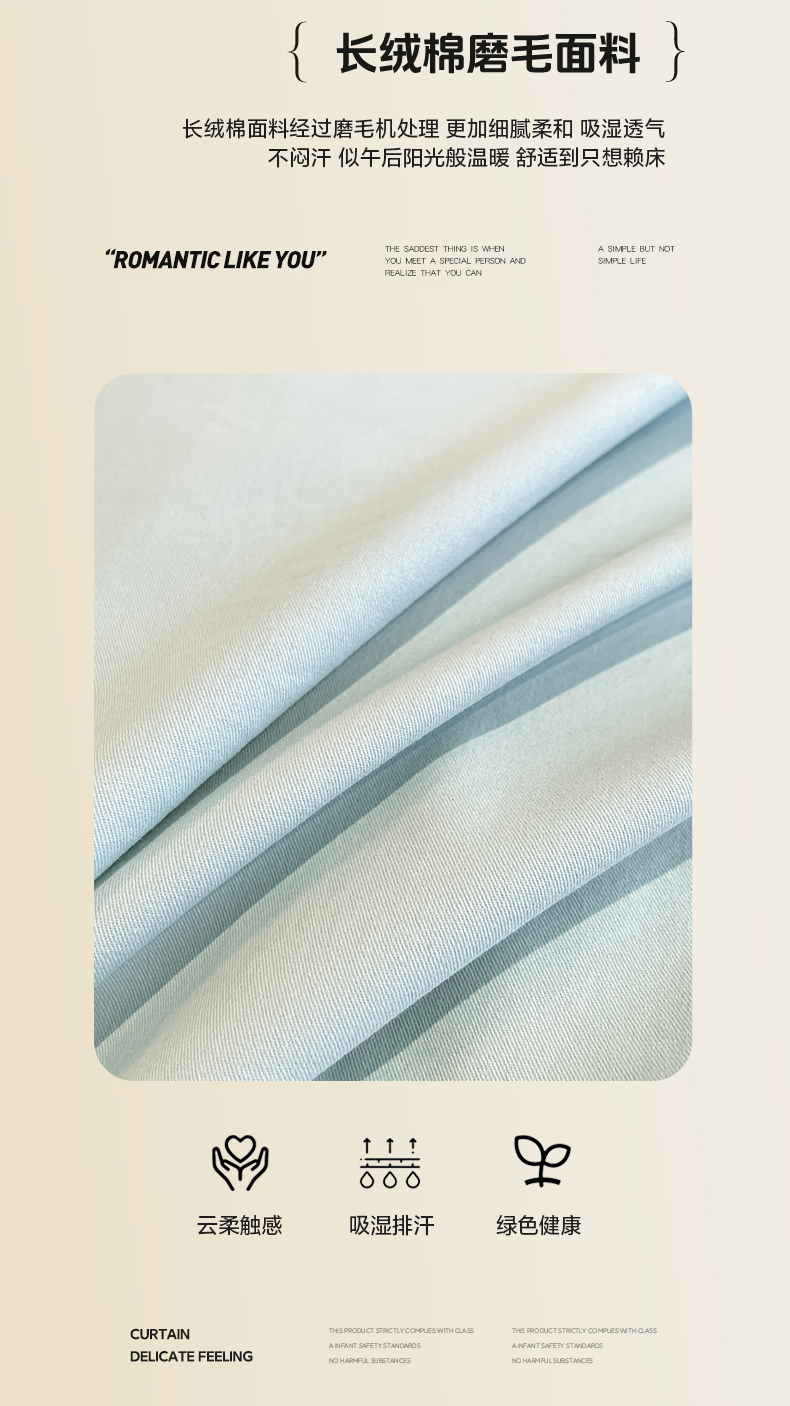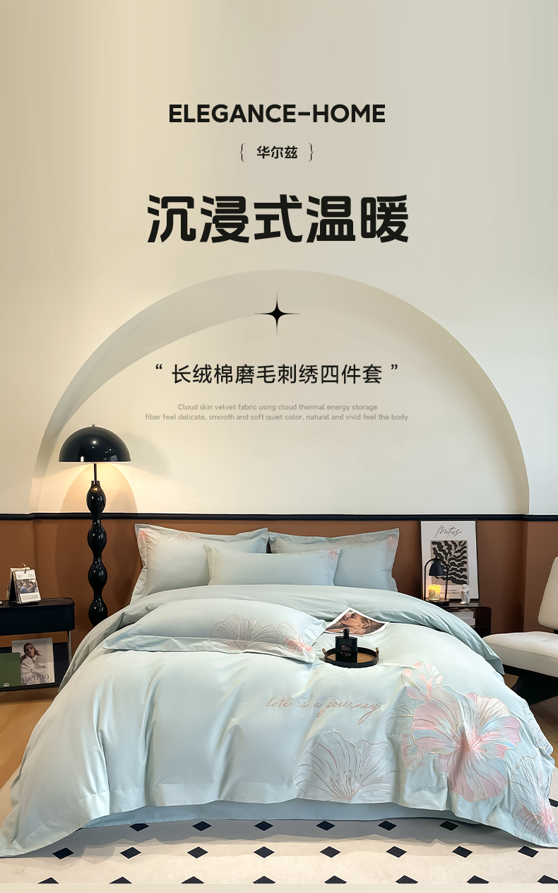 当前位置: 91家纺网 > 商品网购 > 床品套件 > 四件套 > 全棉普通四件套 > 桃园 2025新款纯棉全棉长绒棉磨毛四件套不掉毛-华尔兹 (高端礼盒) 华尔兹-飘蓝