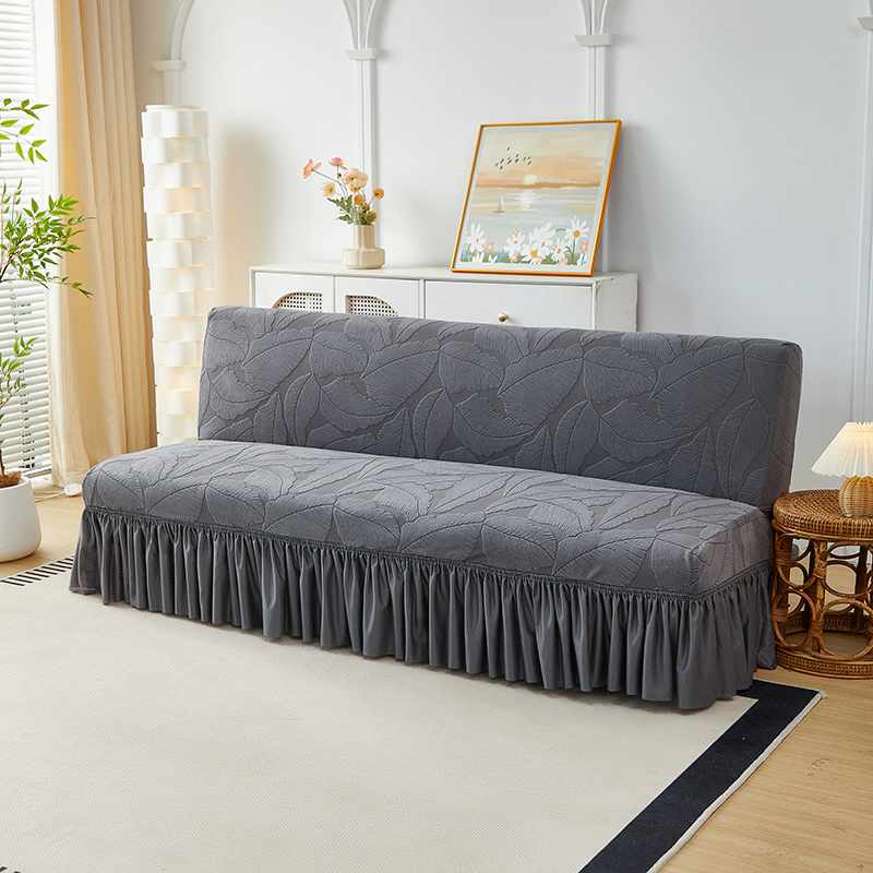 丝绮鹿2025新款富贵叶裙边沙发床套 富贵叶-深灰
