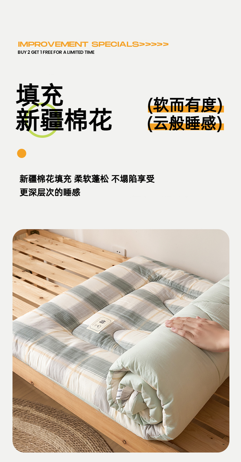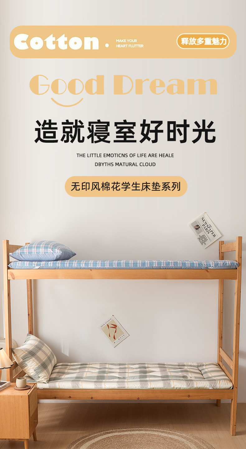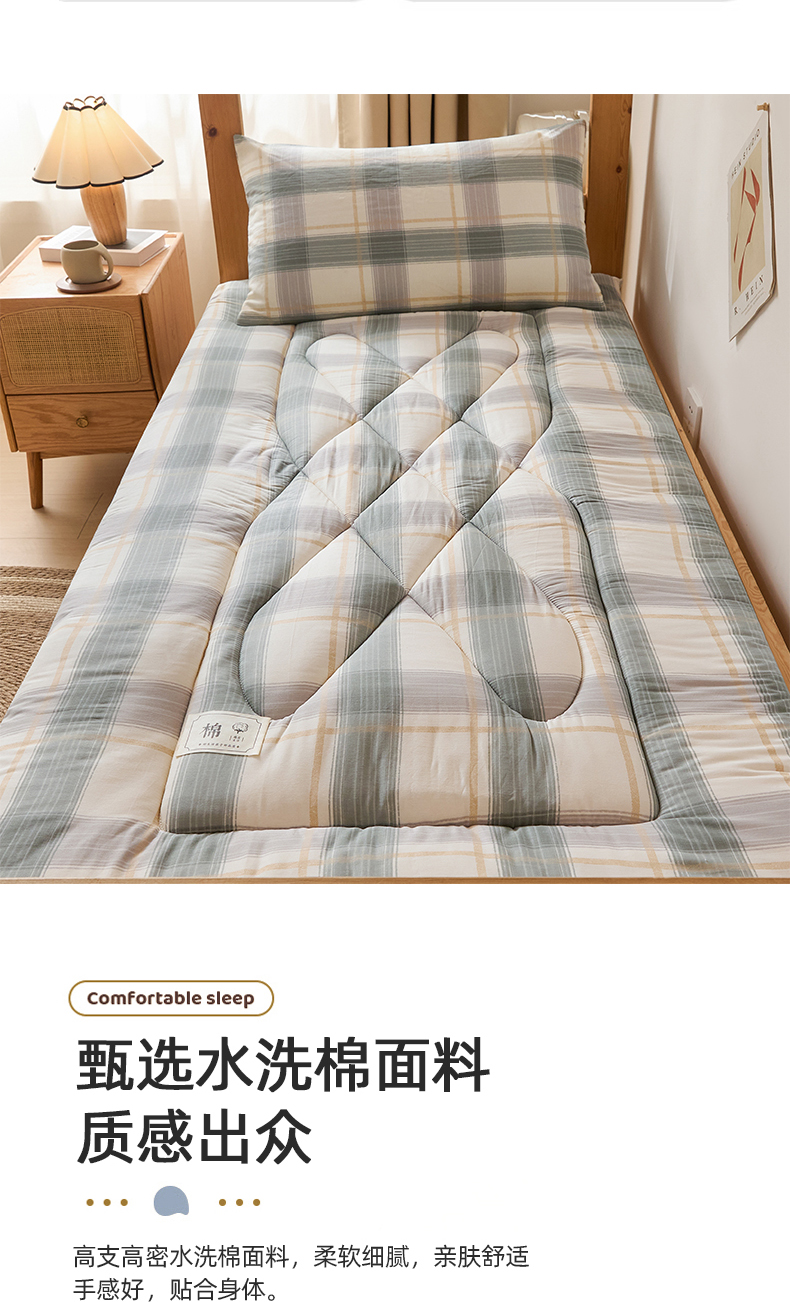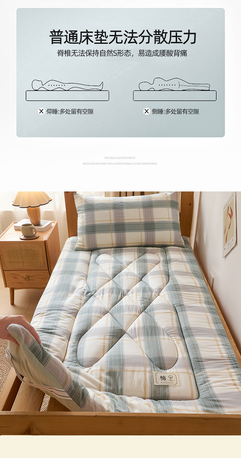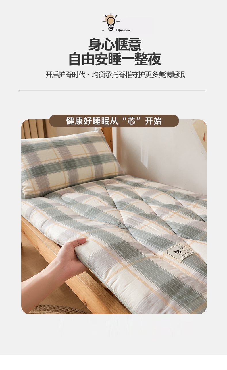• 91家纺网 家纺一手货源 找家纺 爱屋及屋 2025款无印风学生棉花床垫 韵绿格