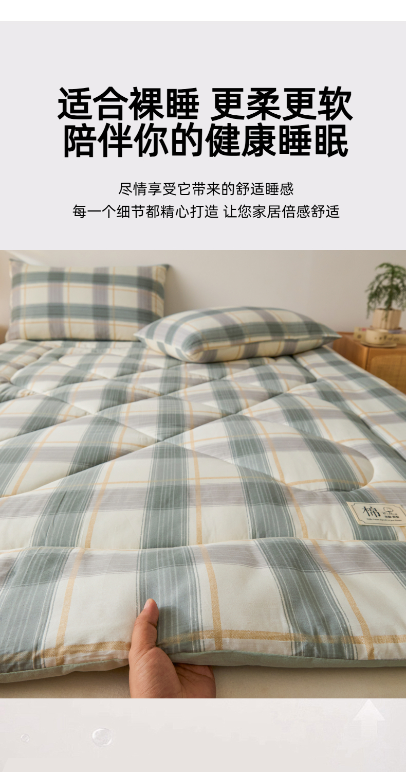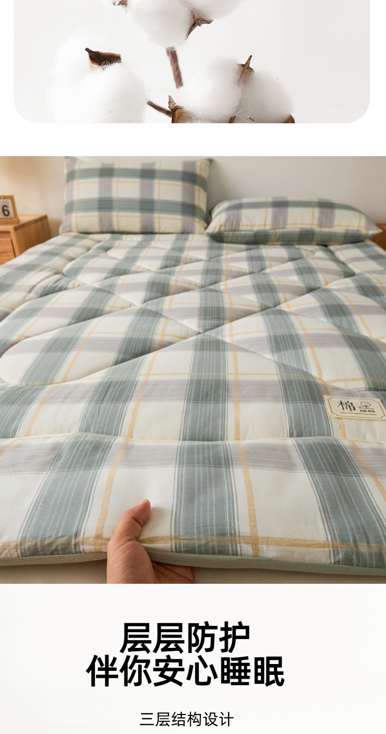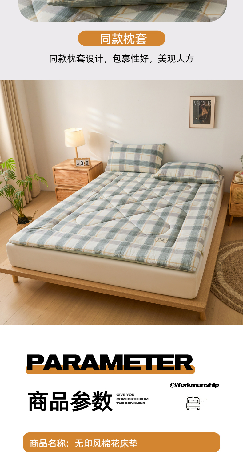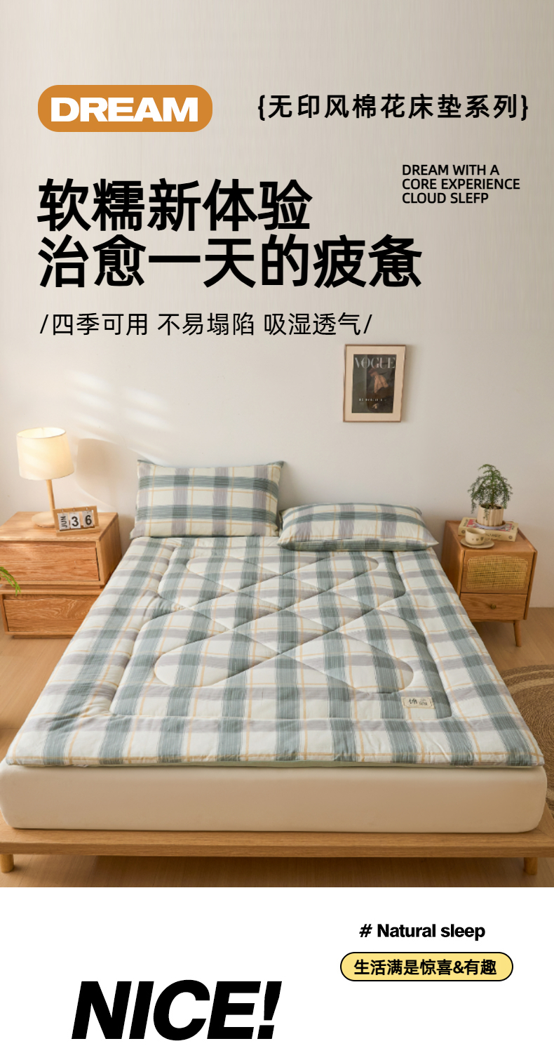 • 91家纺网 家纺一手货源 找家纺 爱屋及屋 2025新款无印风四季款棉花床垫 韵绿格