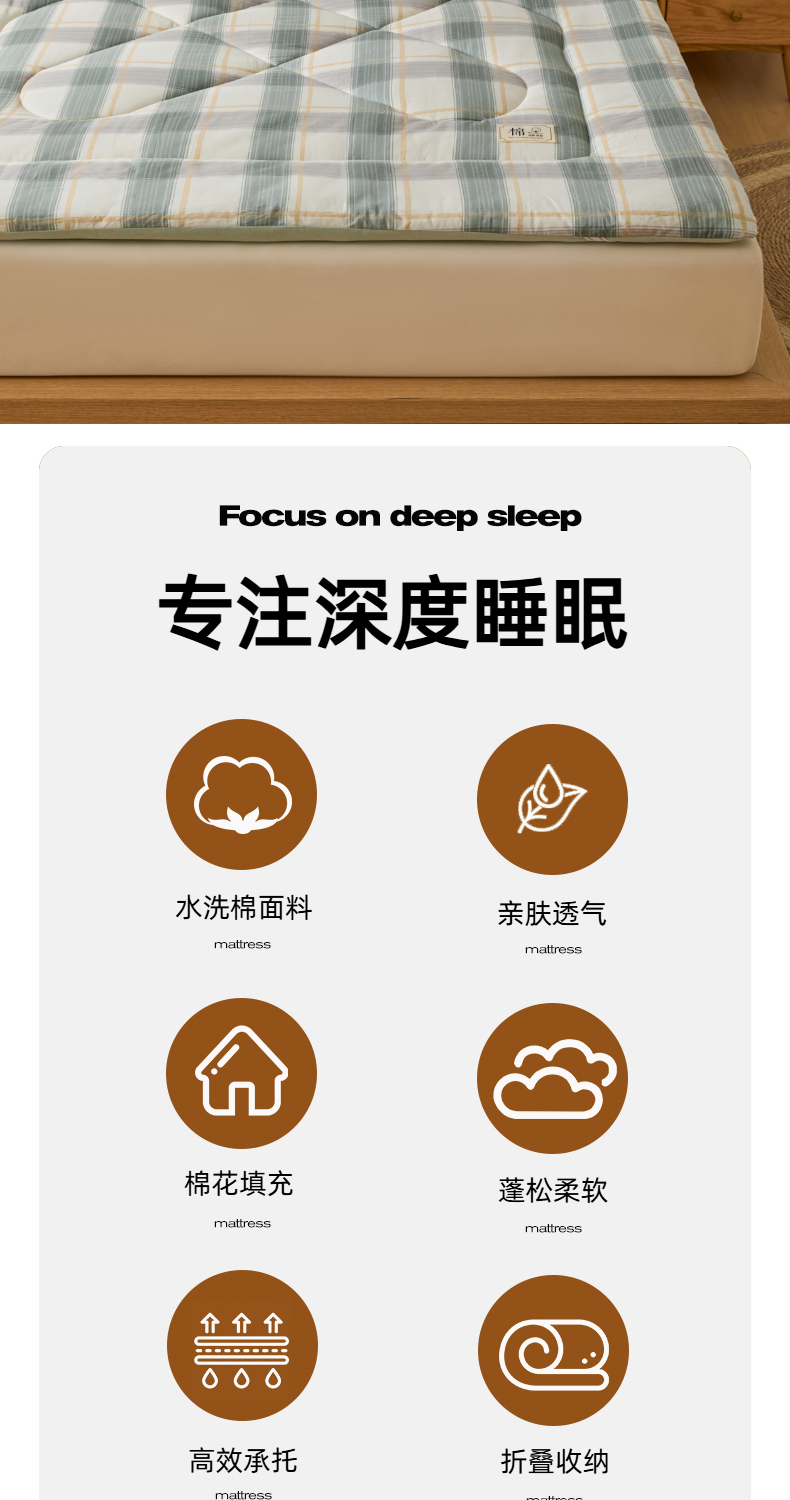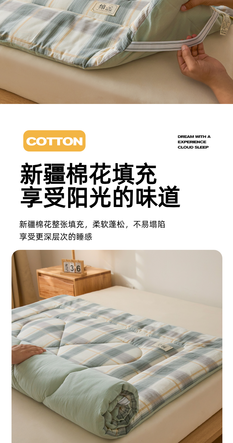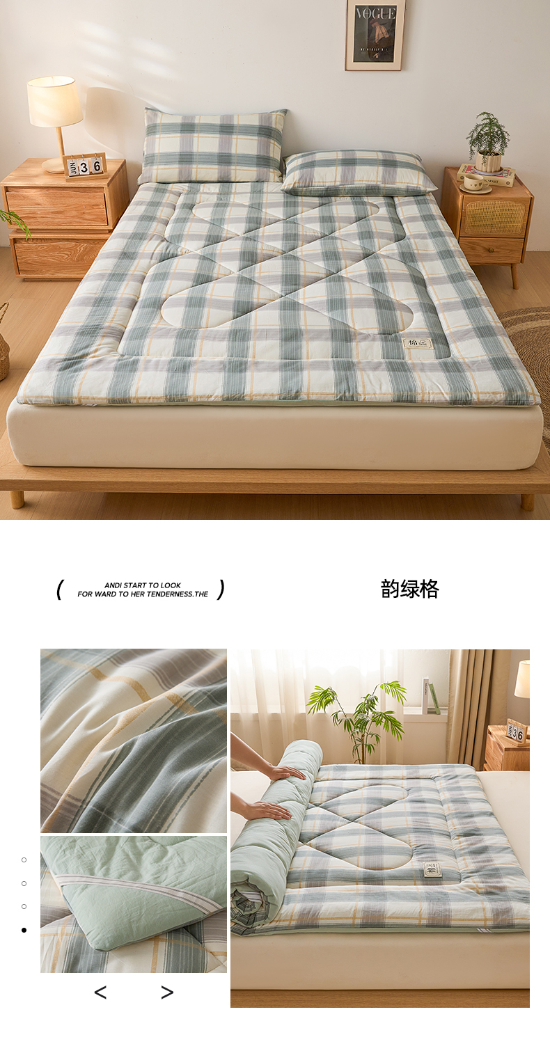 • 91家纺网 家纺一手货源 找家纺 爱屋及屋 2025新款无印风四季款棉花床垫 韵绿格