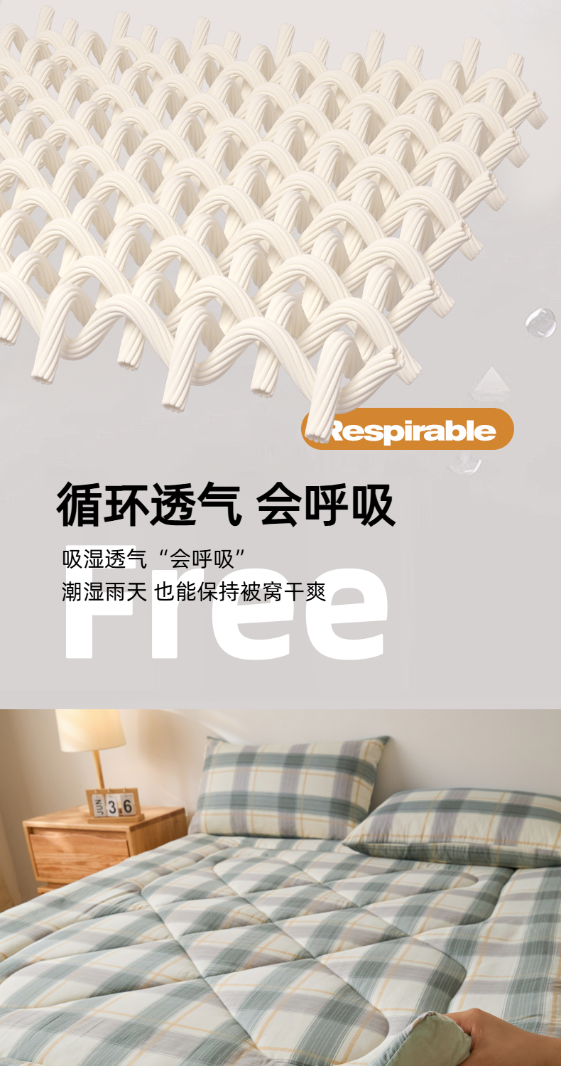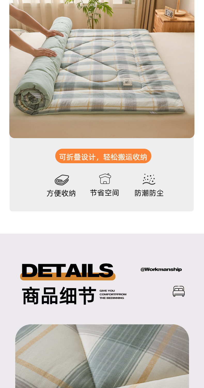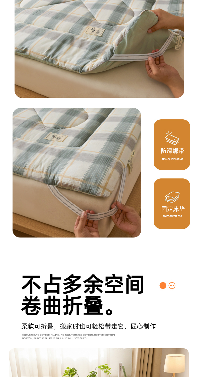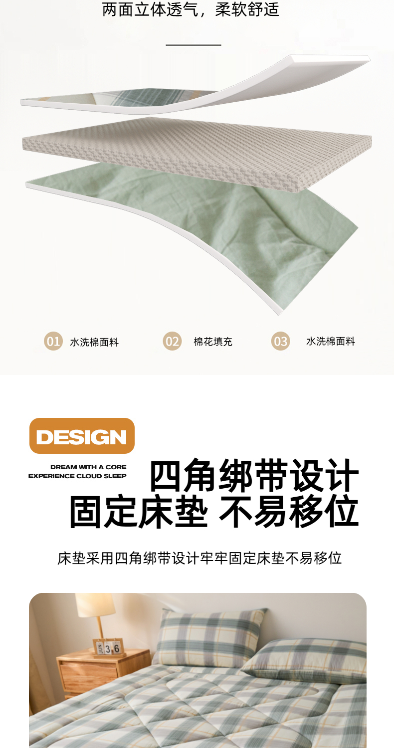 • 91家纺网 家纺一手货源 找家纺 爱屋及屋 2025新款无印风四季款棉花床垫 韵绿格