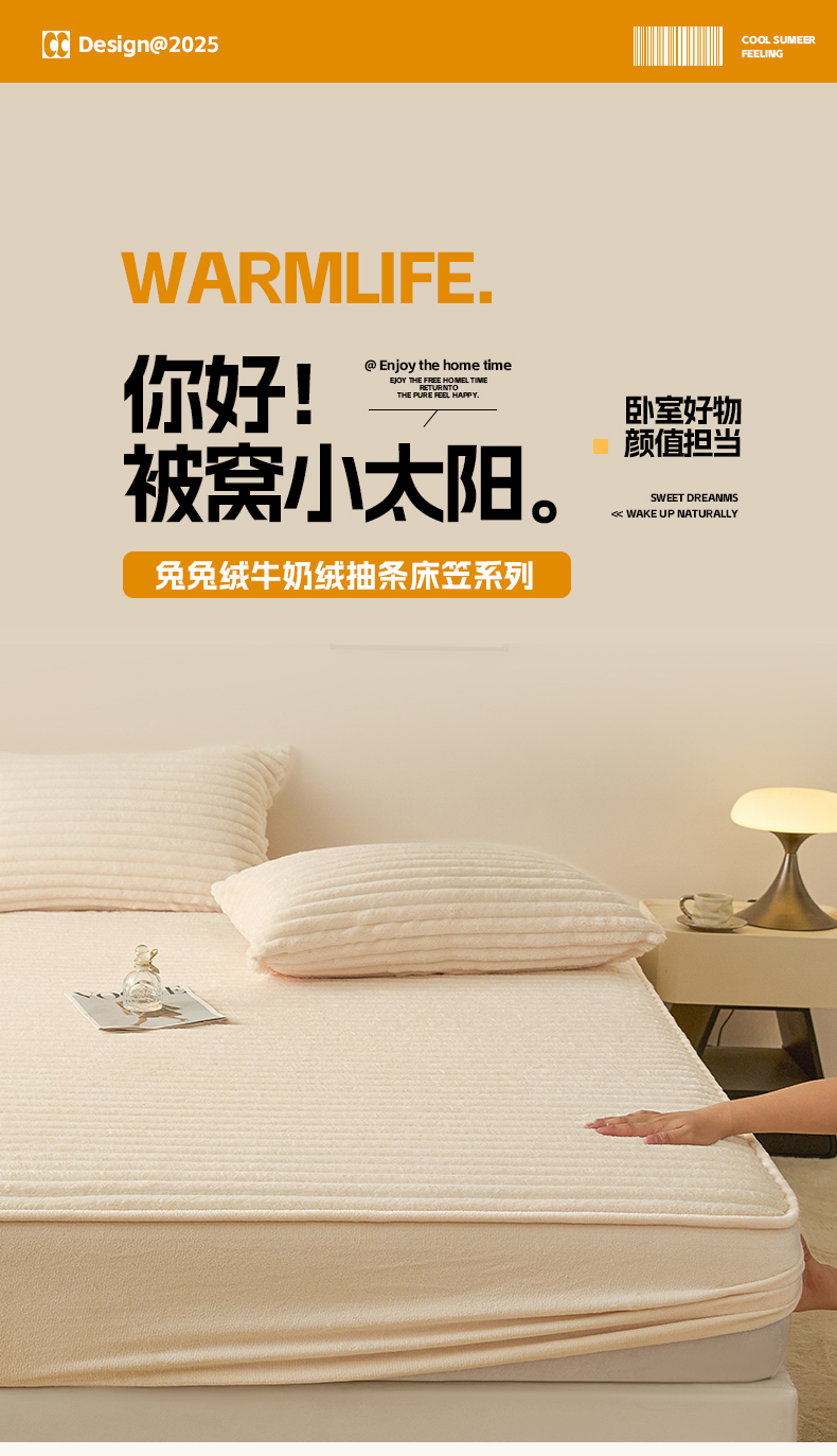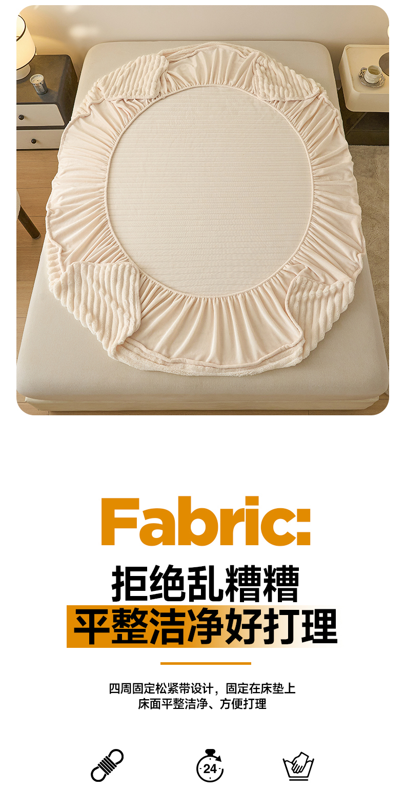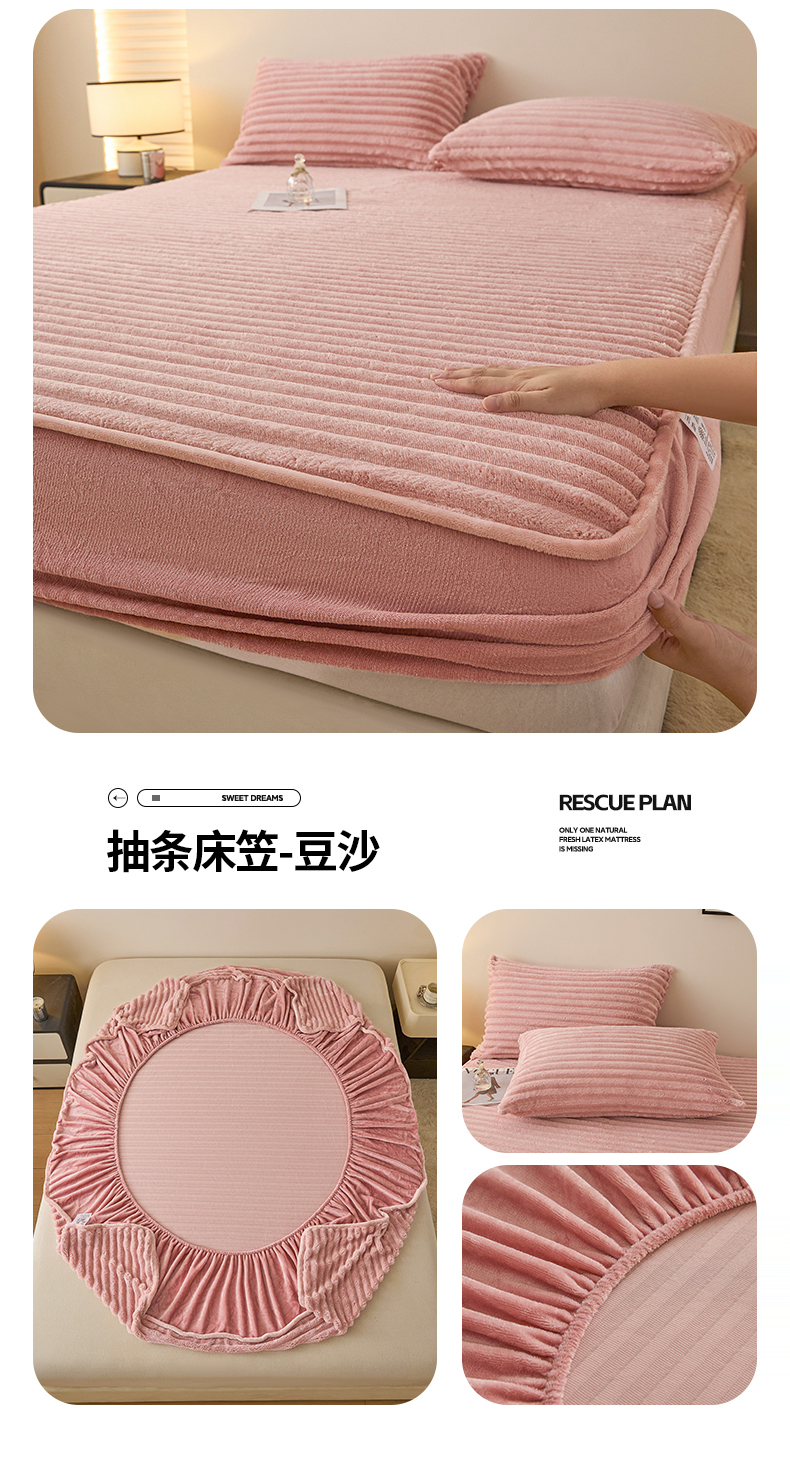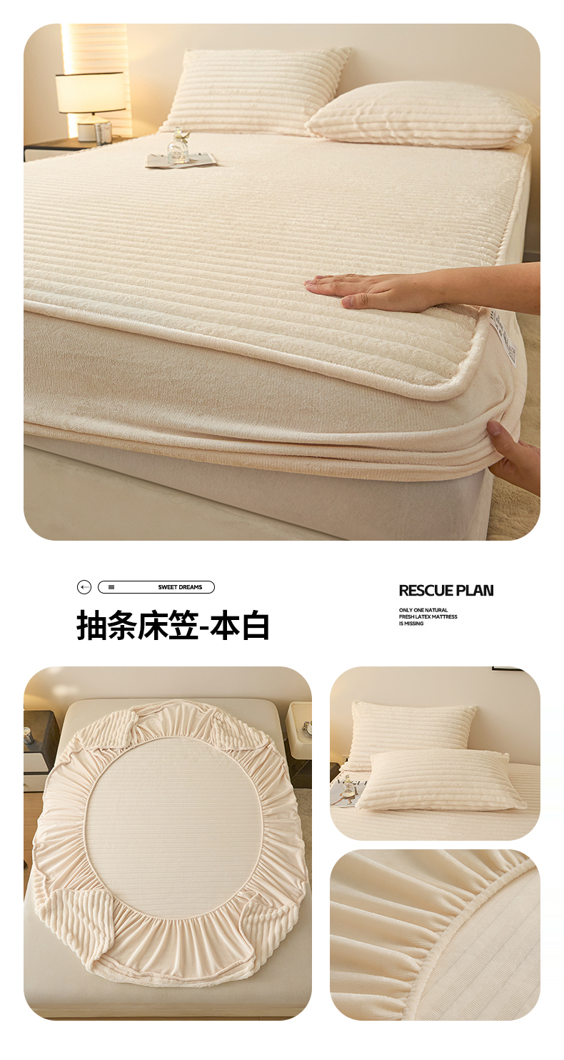 • 91家纺网 家纺一手货源 找家纺 欧邦 2025新款兔兔绒牛奶绒抽条床笠 抽条床笠-本白