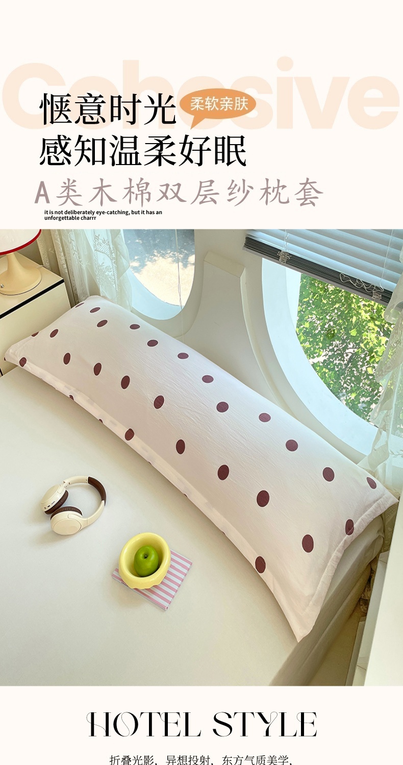 梦舒羽 2025新款双层纱双人枕套情侣学生长枕芯套枕头内胆套-缤纷波点 波点-咖啡色