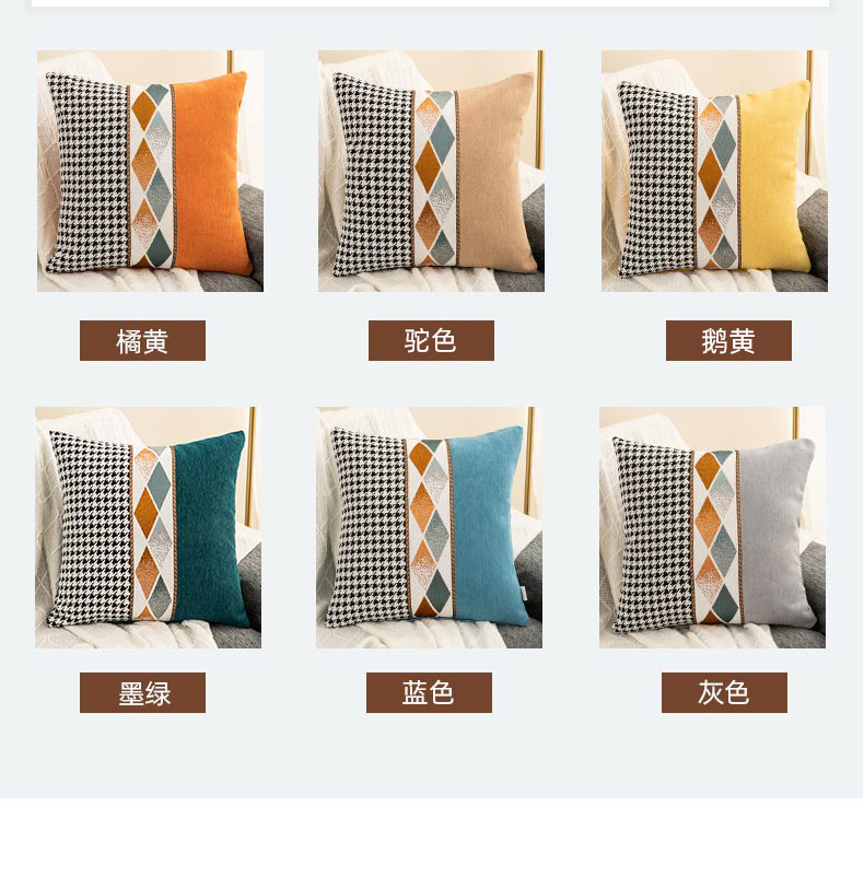 (总)新奇异 2025新款时尚经典涤麻格子抱枕,橙色格子,米白格子,黄色格子,绿色格子,深咖格子,天蓝格子,藏蓝格子,组合图,红白格子,黑白格子