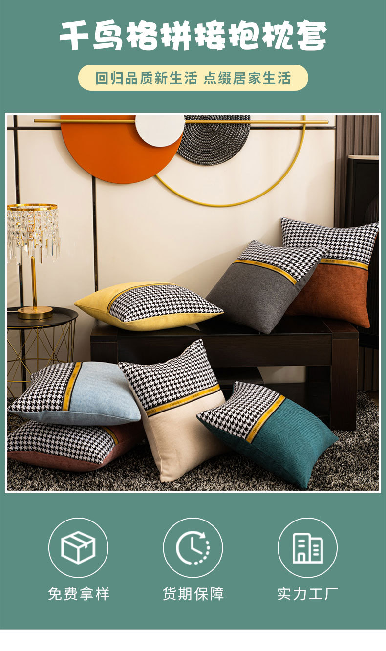 商品名称:新奇异 2025新款千鸟格拼接抱枕 (支持定制) 千鸟格-砖红