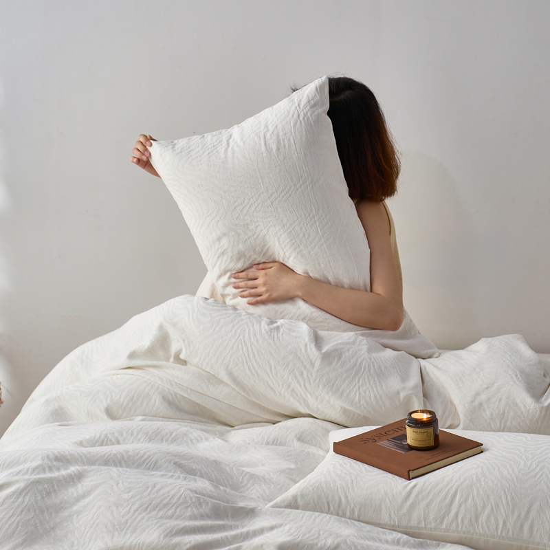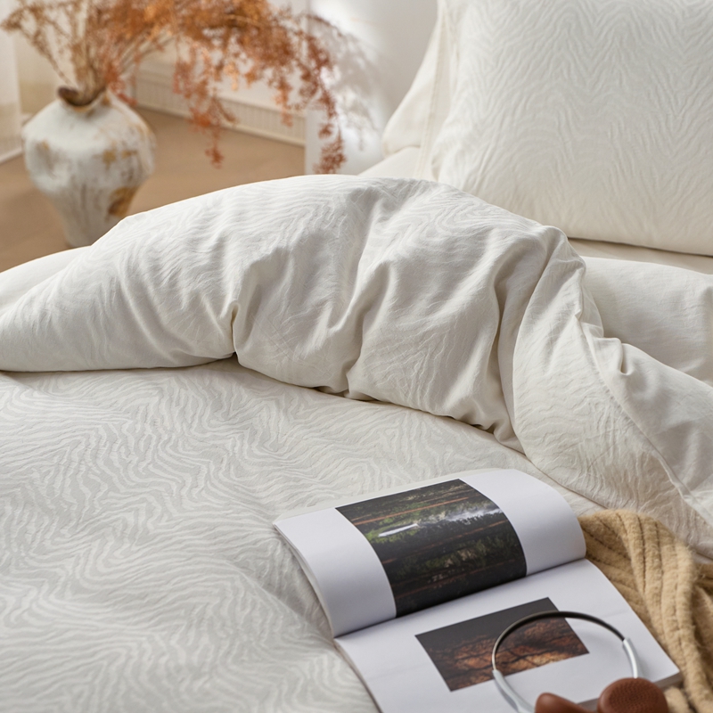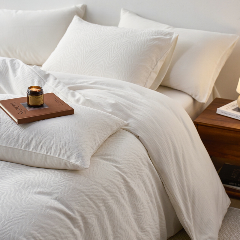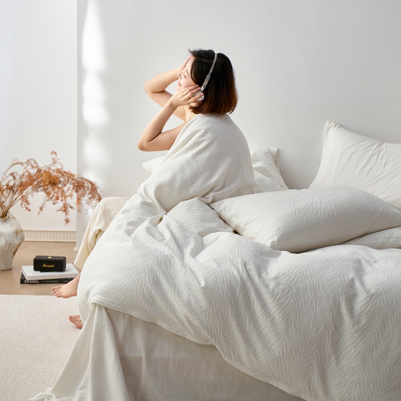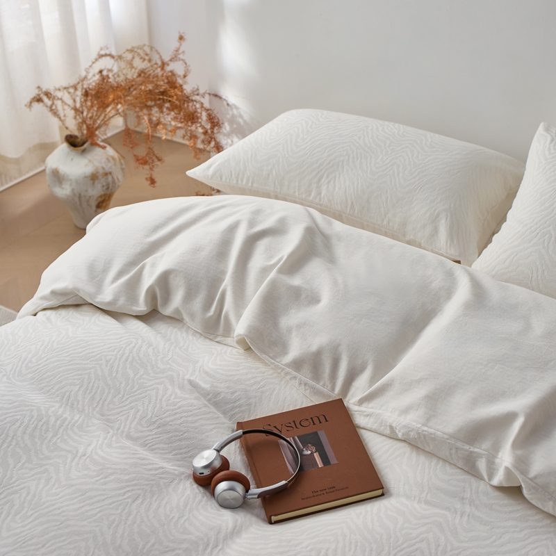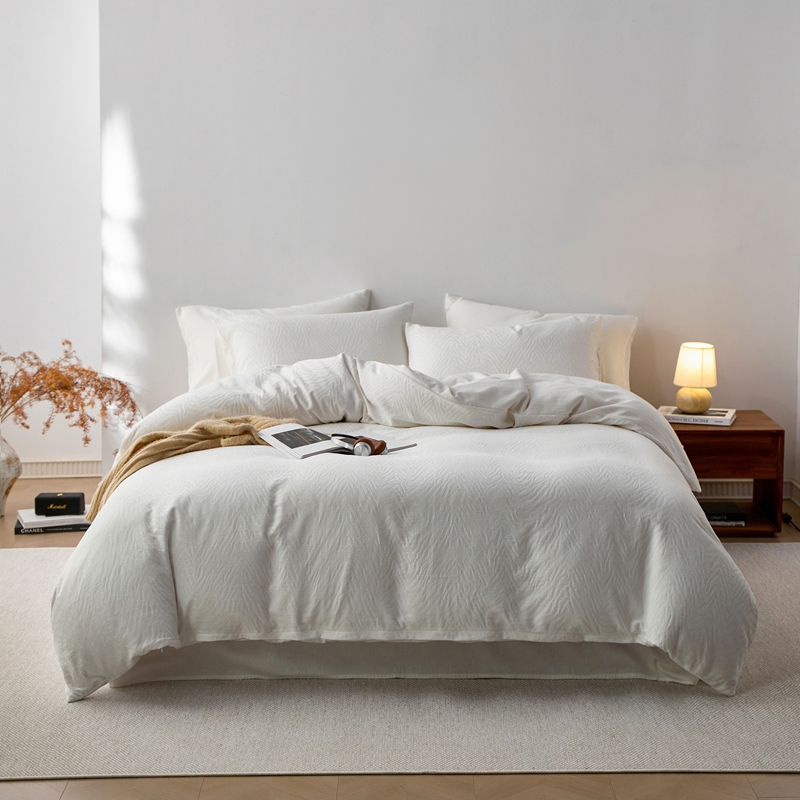 梦享生活家居 2025新款白色全棉肌理纹提花四件套 曲线