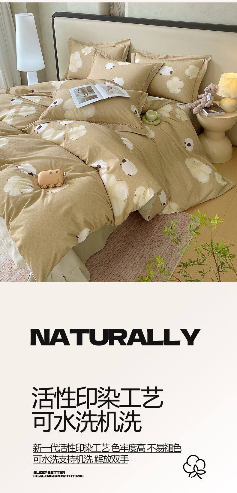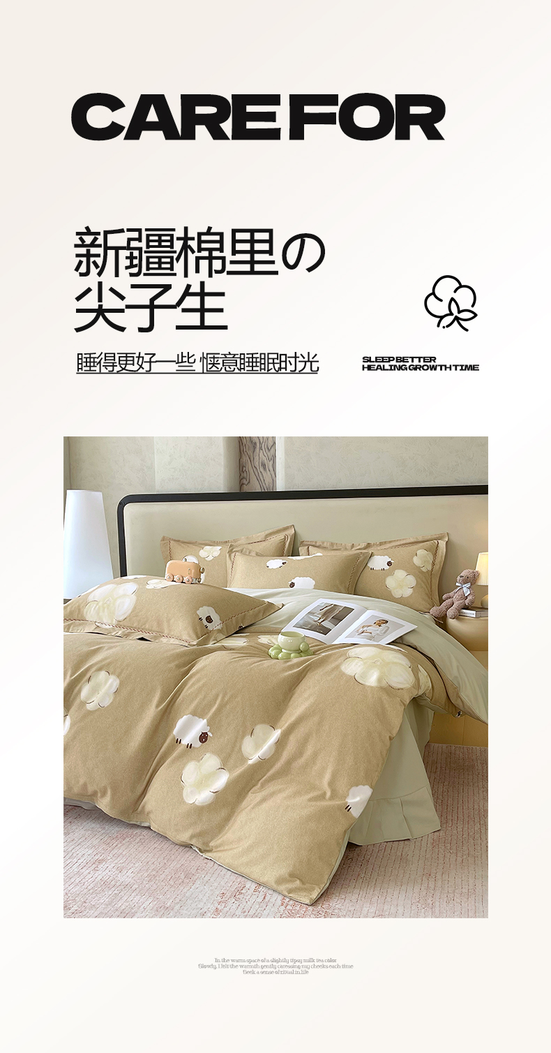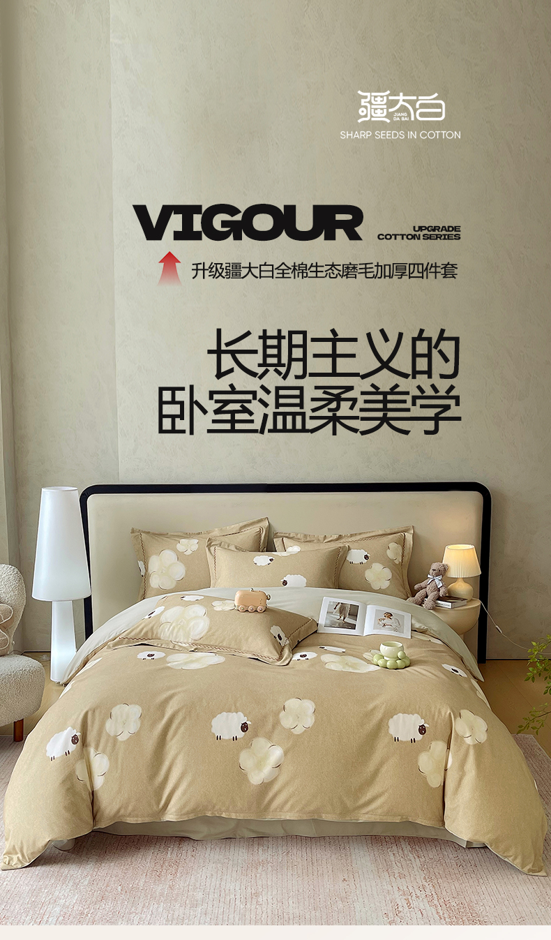 商品名称:慕希家纺 2025新款疆大白全棉纯棉加厚生态磨毛四件套 悠闲午后