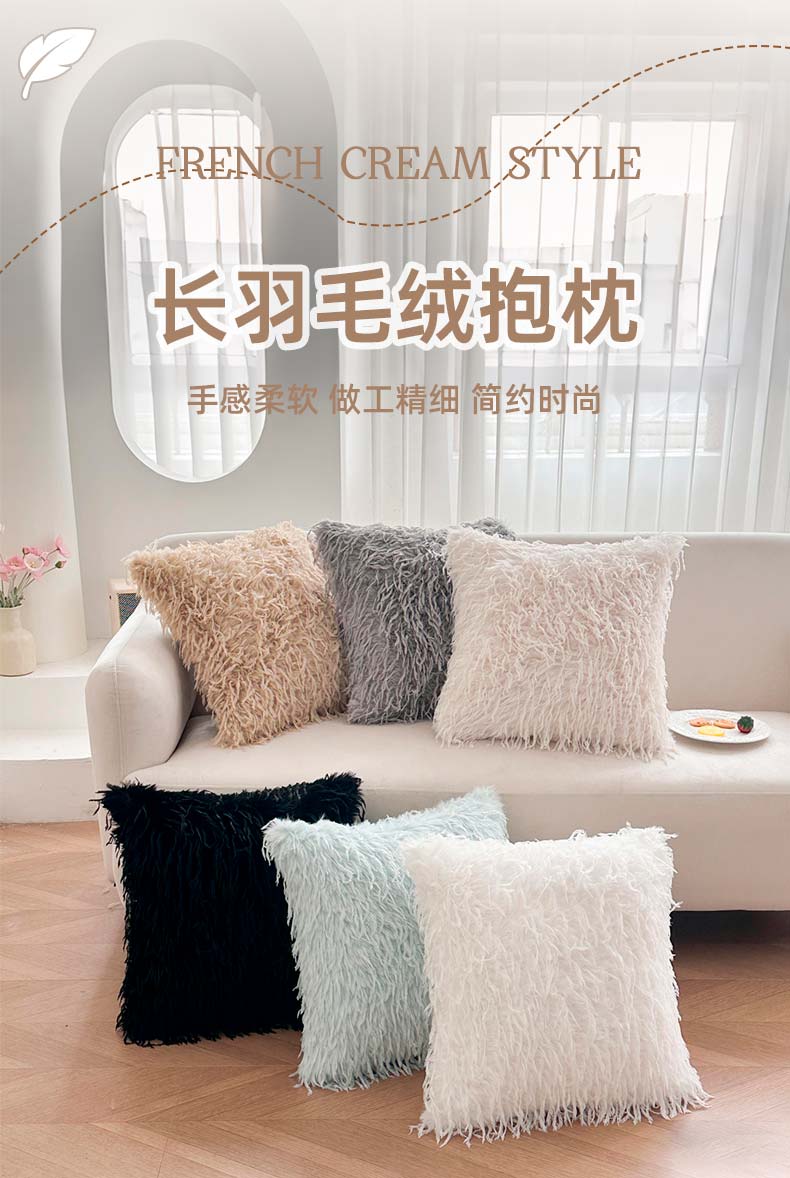 新奇异 2025新款羽毛绒抱枕靠垫 长羽毛绒-奶油白