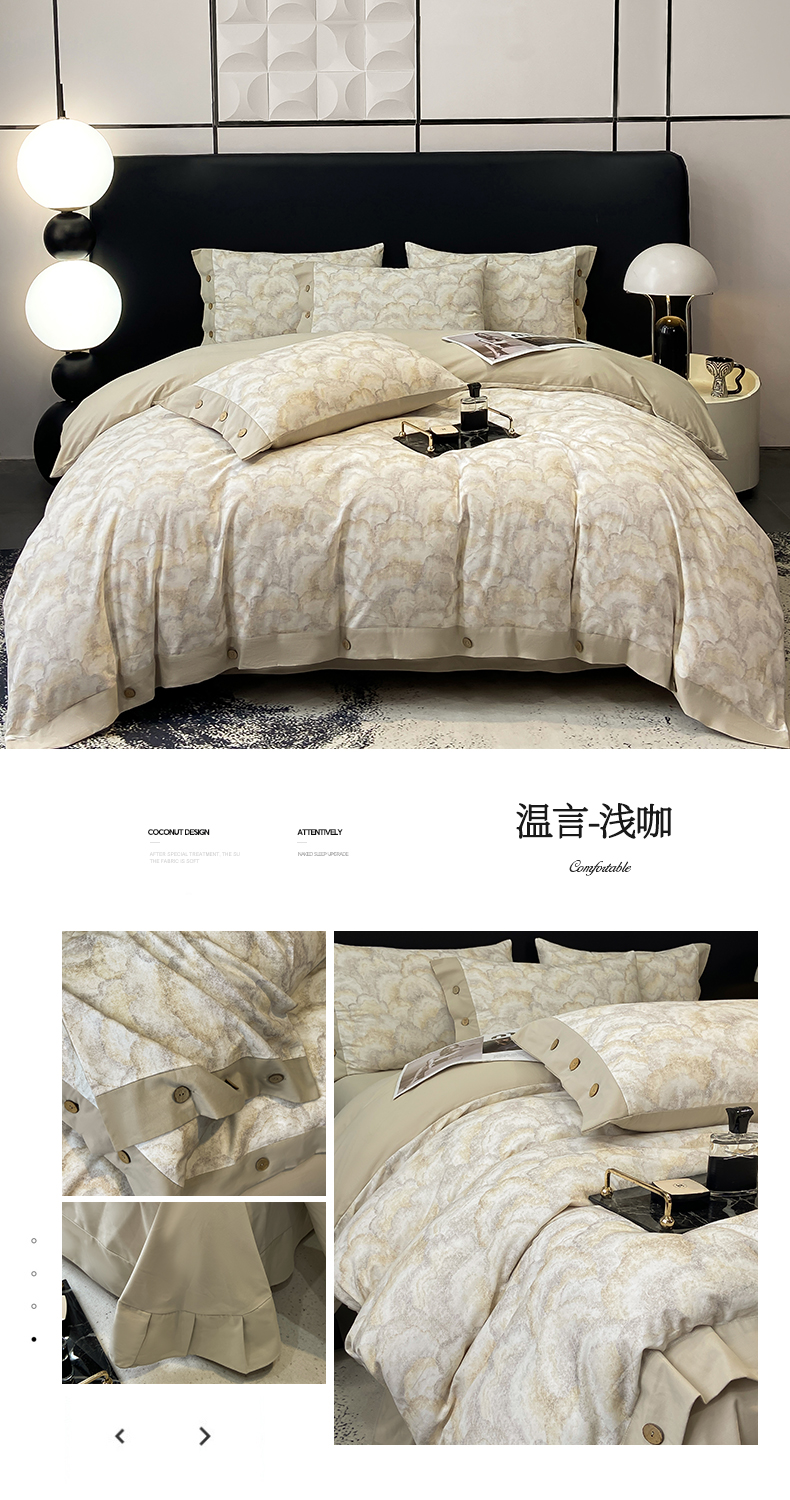 商品名称:慕希家纺 2025新款全棉纯棉轻奢加厚磨毛纽扣款四件套 艾文