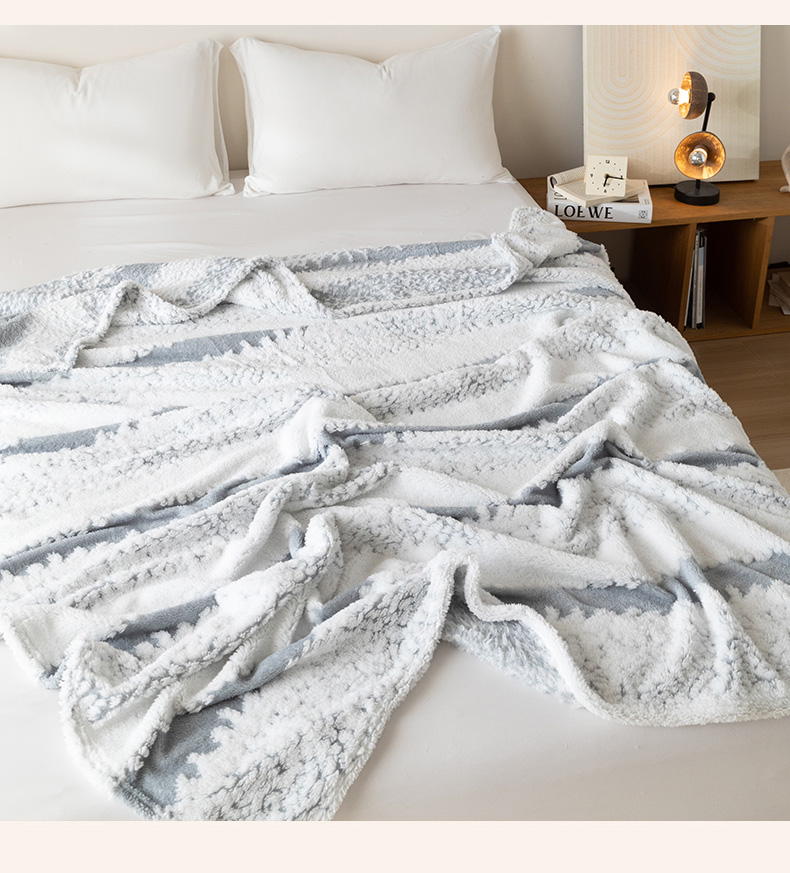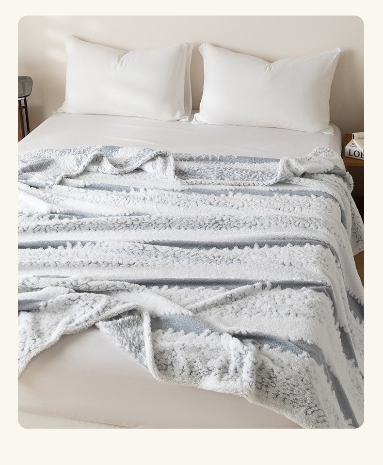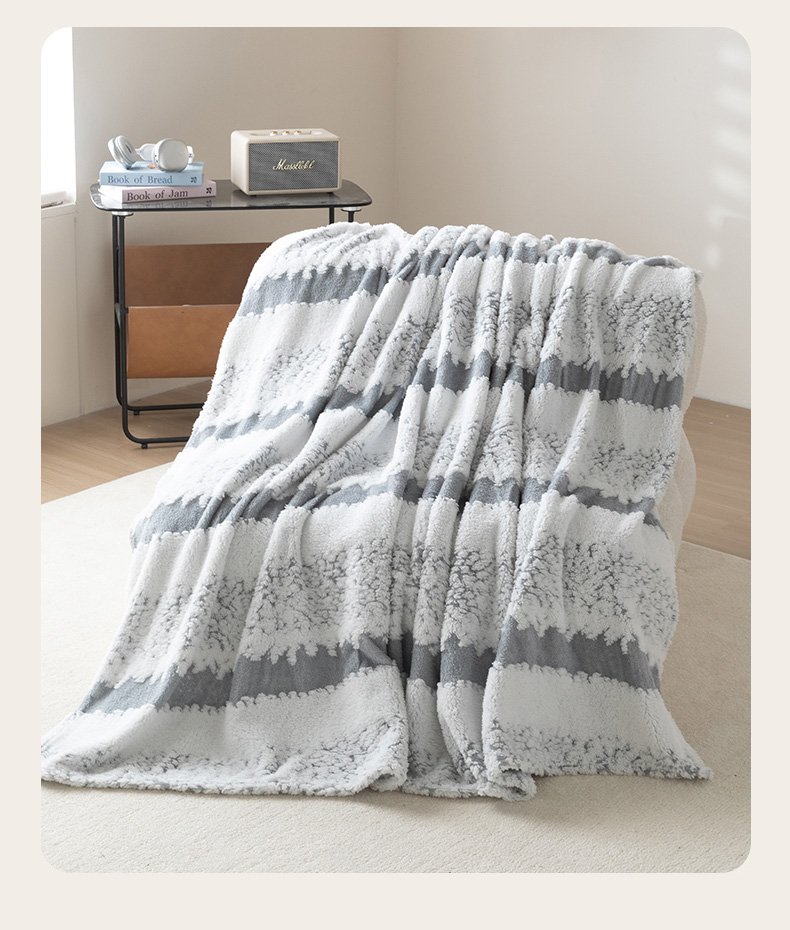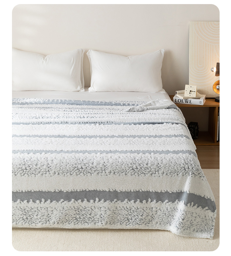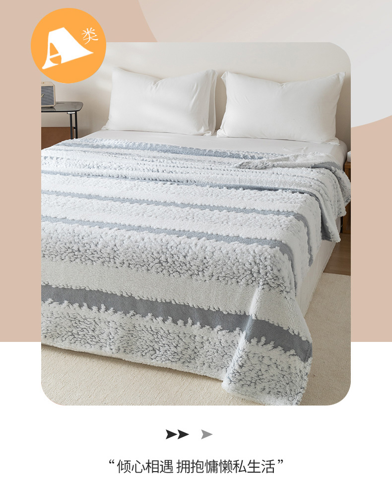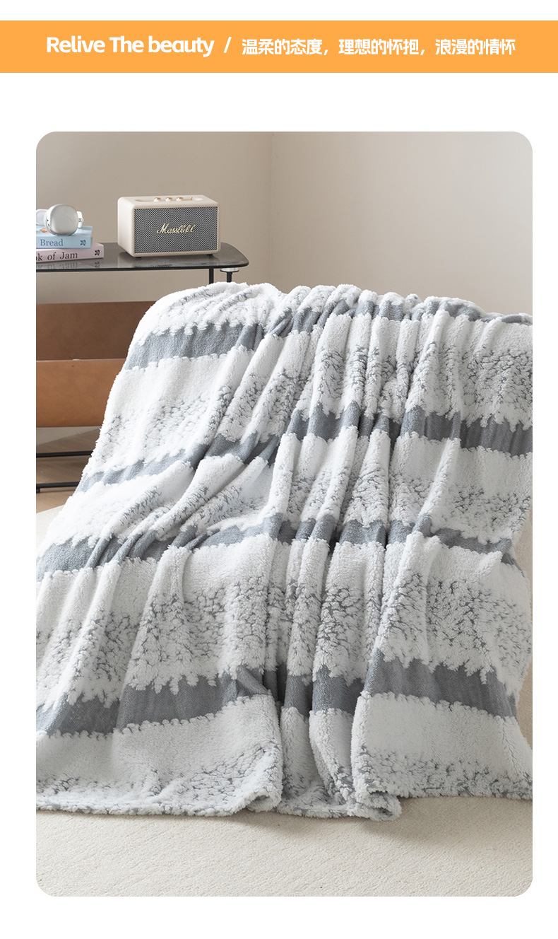 商品名称:梵心家纺 2025新款阳离子双色提花毛毯清新条纹风简约时尚毯子毛毯-可供跨境电商 阳离子-灰