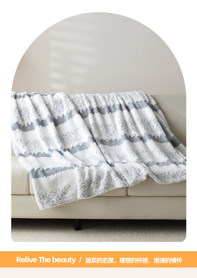 梵心家纺 2025新款阳离子双色提花毛毯清新条纹风简约时尚毯子毛毯-可供跨境电商 阳离子-灰