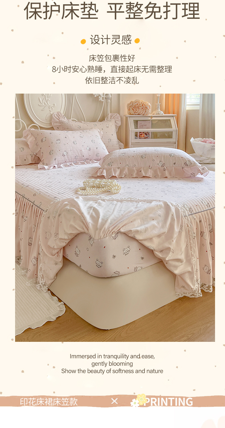 (总)网红馆(ck家纺) 2025新款全棉磨毛印花床裙款复古法式优雅四件套,花舞漫天-粉,玫瑰趣事-粉,玫瑰趣事-灰,梦语-桔