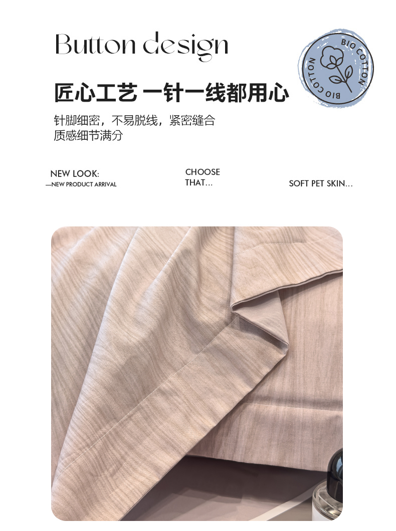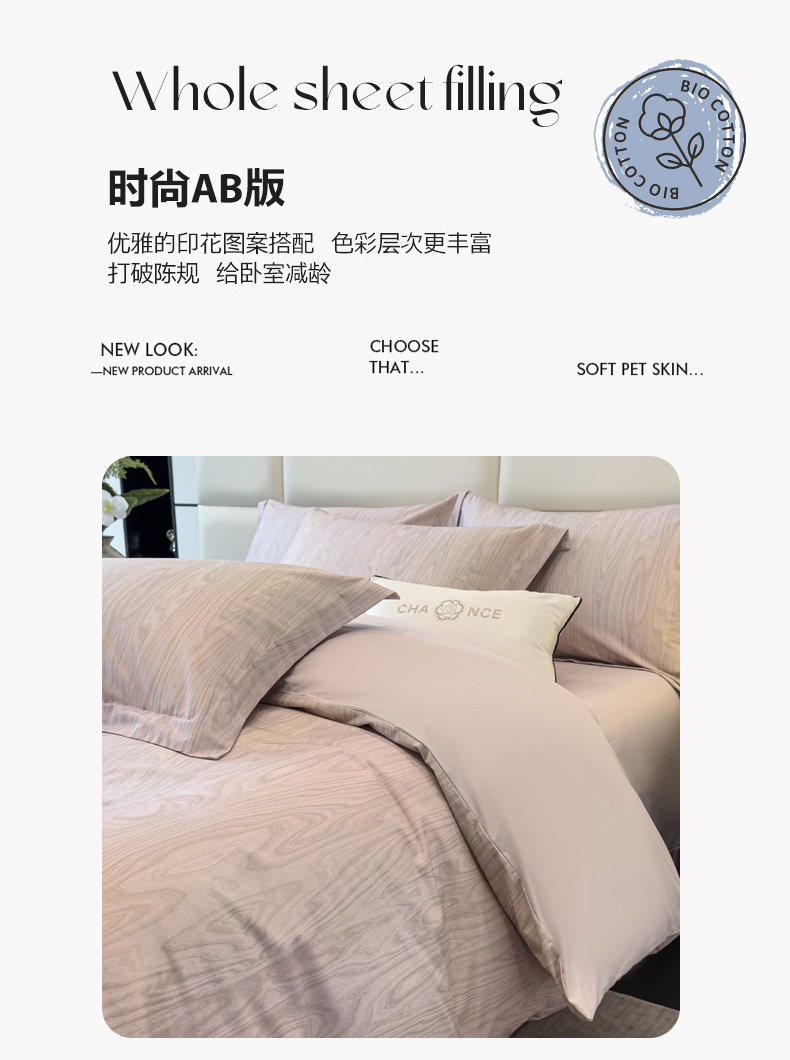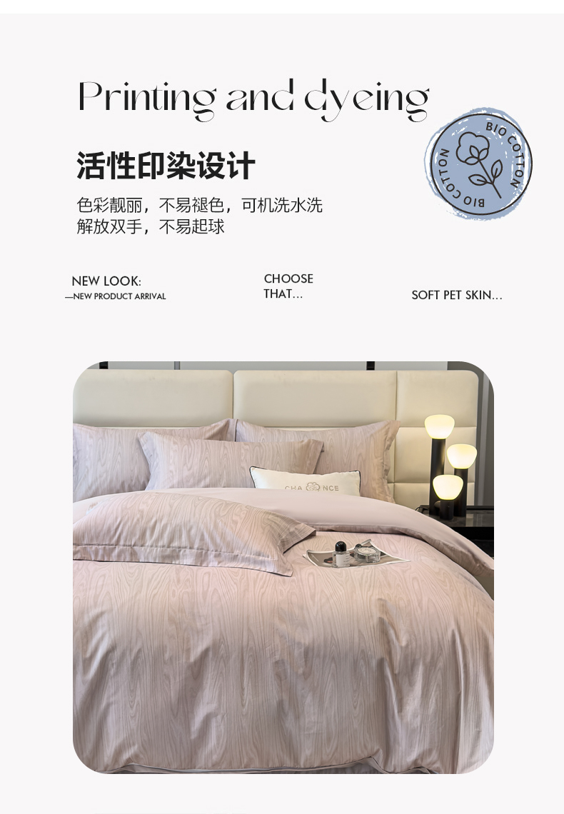 商品名称:洺兰家居 2025新款高支高密轻奢数码印花四件套长绒棉纯棉四件套 木纹-棕