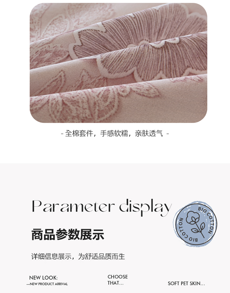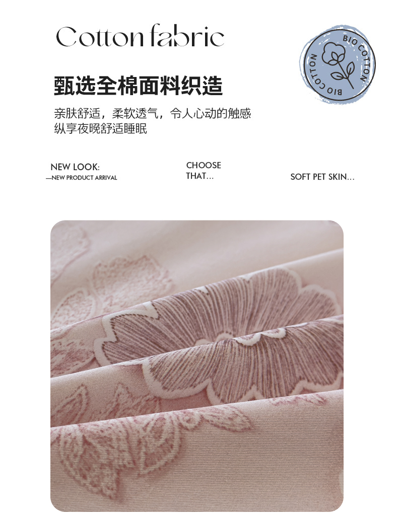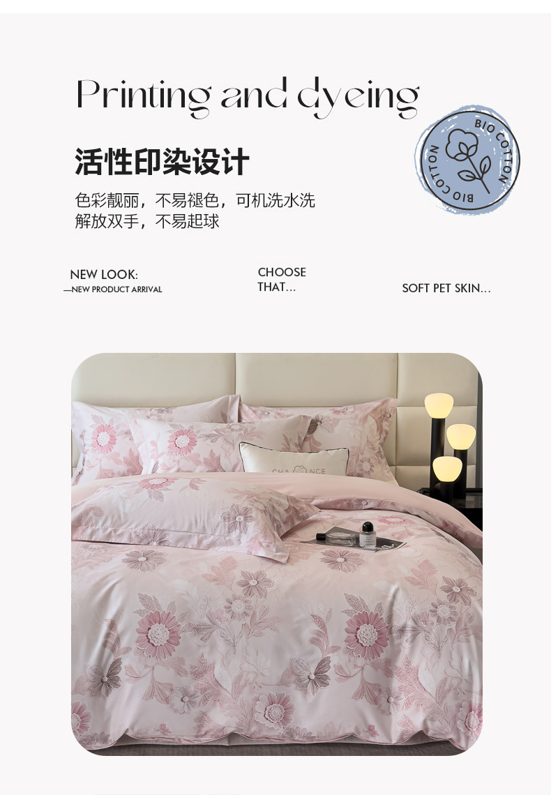 商品名称:洺兰家居 2025新款高支高密轻奢数码印花四件套长绒棉纯棉四件套 之简-粉
