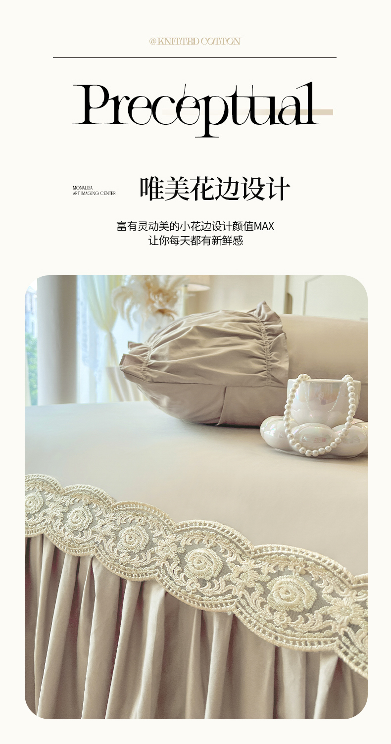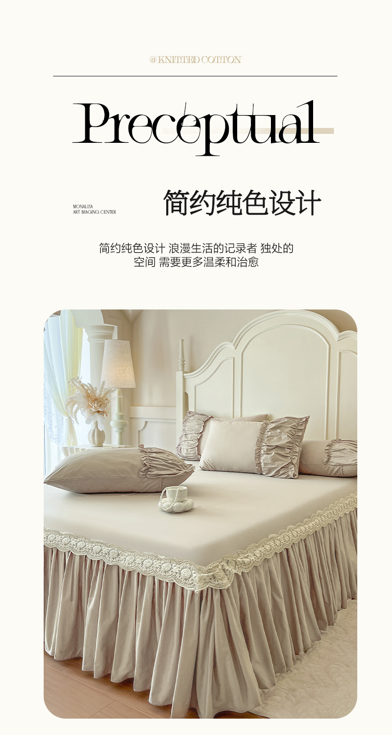 • 91家纺网 家纺一手货源 找家纺 (总)瑞宝 2025新款全棉花边床裙四件套系列-落日甜茶(控价308起),落日甜茶-梦幻玉,落日甜茶-奶油白,落日甜茶-青柠绿,落日甜茶-甜紫