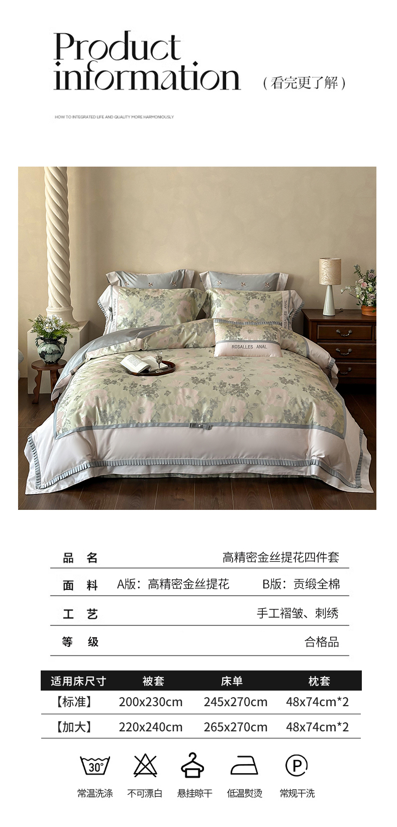 当前位置: 91家纺网 > 商品网购 > 床品套件 > 四件套 > 全棉普通四件套 > 宏羽纺家纺 2025新款100s全棉纯棉贡缎法式刺绣花边四件套 欧碧绿