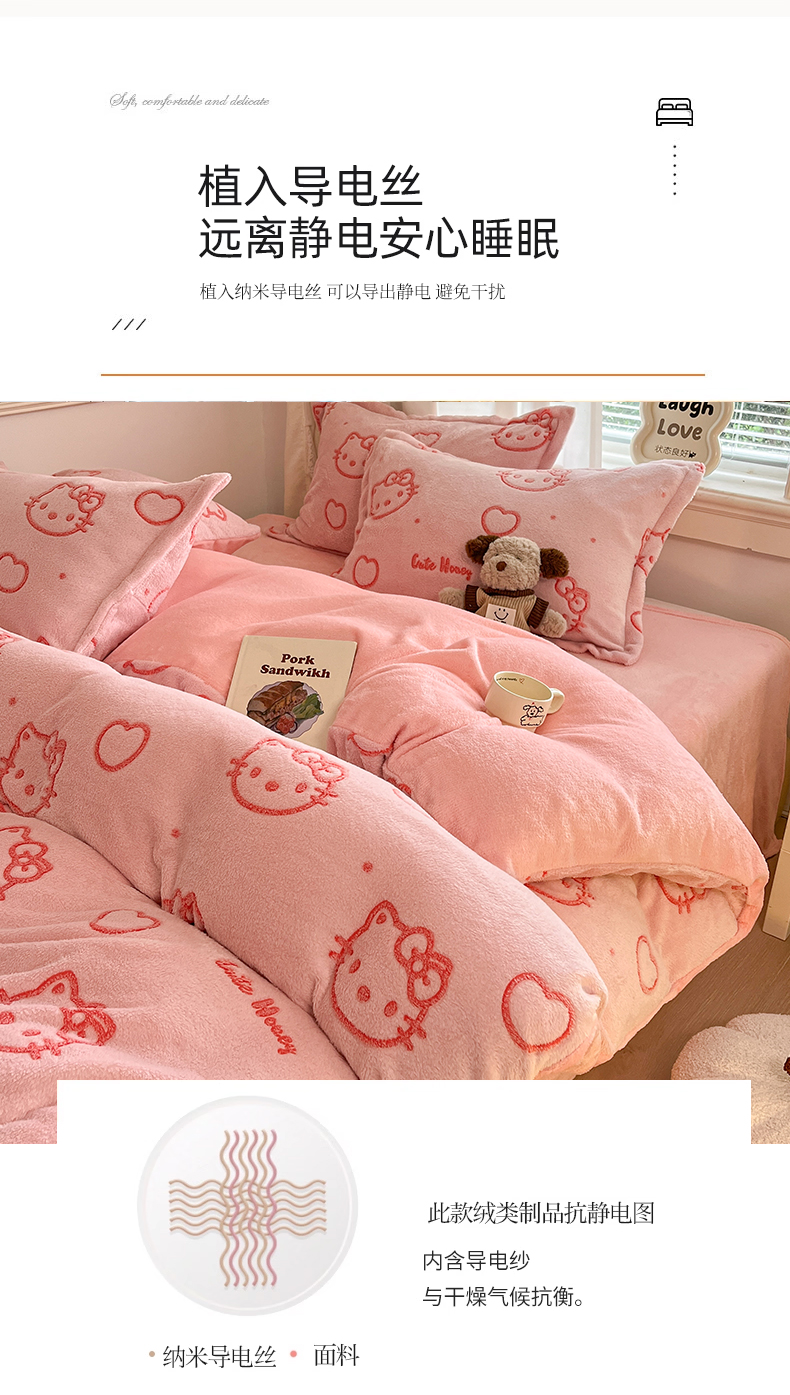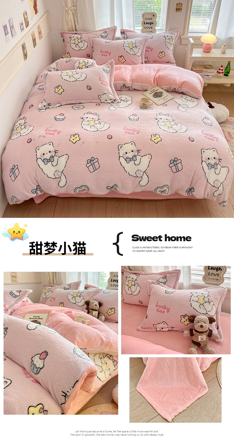 当前位置: 91家纺网 > 商品网购 > 床品套件 > 四件套 > 法莱绒四件套 > 川悦生活2025新款立体雪花绒印花大床四件套系列二场景二 甜心喵喵