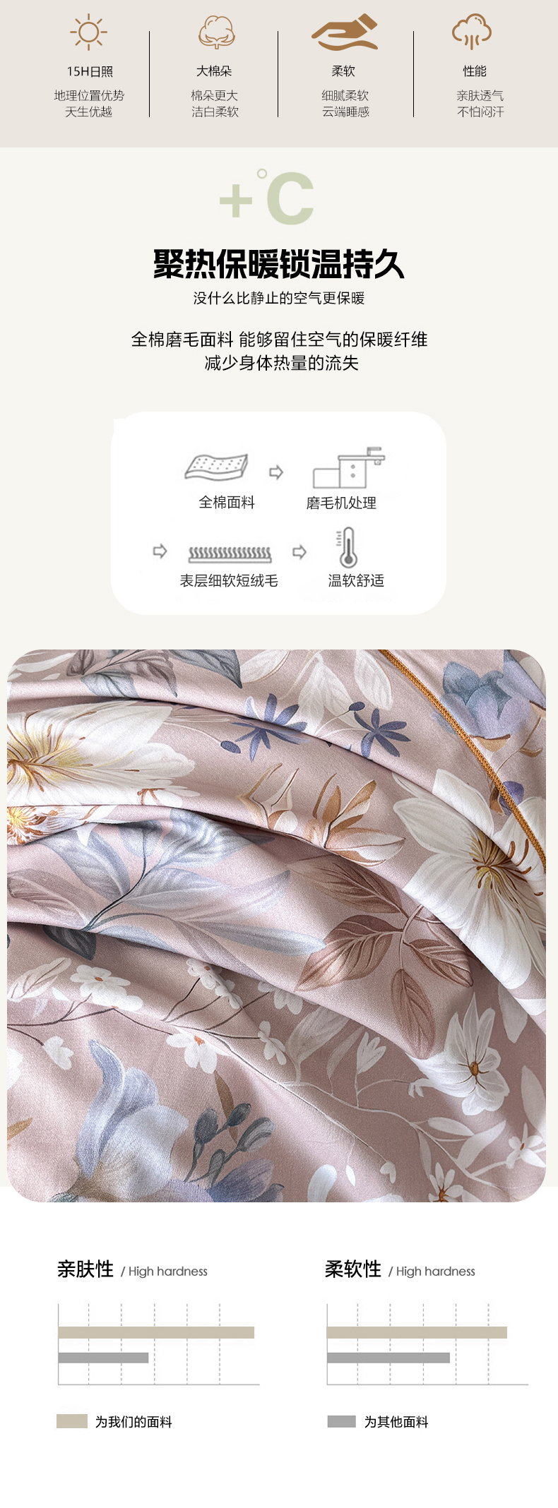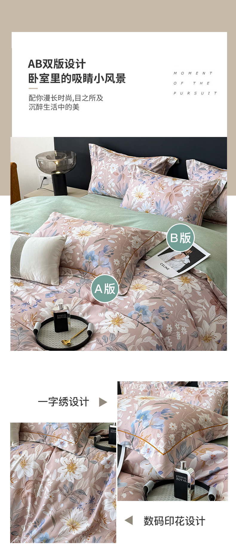当前位置: 91家纺网 > 商品网购 > 床品套件 > 四件套 > 普通磨毛四件套 > 清雅福2025新款A类全棉磨毛数码印花四件套 亭语花间