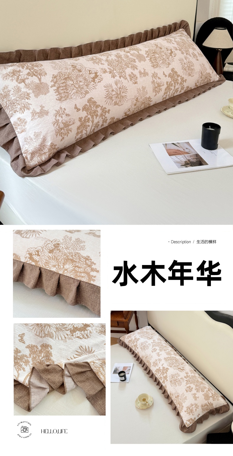 商品名称:梦舒羽 2025新款可水洗原麻双人花边枕套宿舍情侣枕芯套加长枕头套内胆套仿亚麻 水木年华