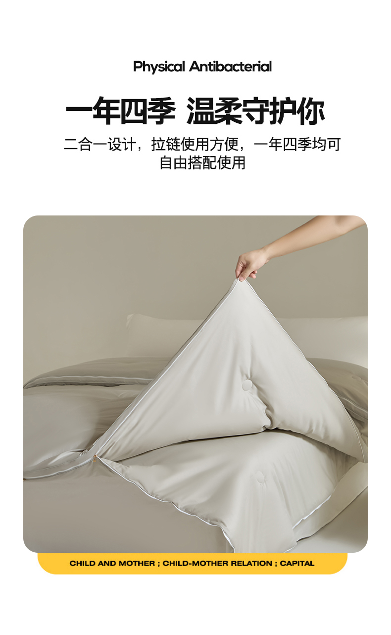 商品名称:纪梵茜 2025新款李官奇正品55%大豆被子60长绒棉拉链子母被双胎二合一被芯冬被 灰色