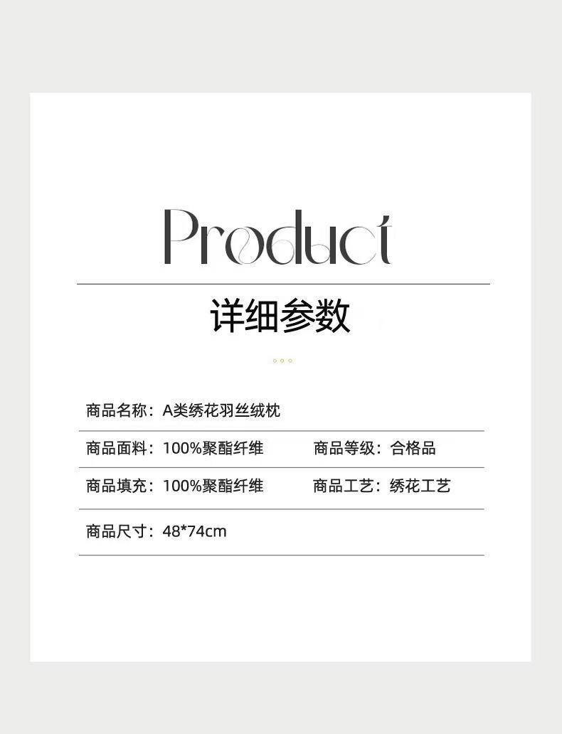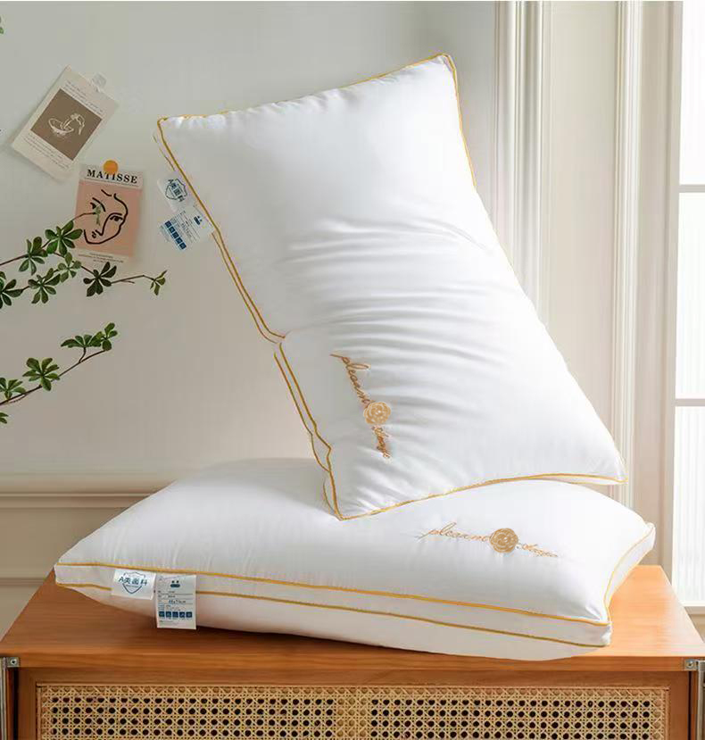商品名称:永乐枕芯 2025新款山茶花刺绣枕枕芯羽丝绒枕芯星级酒店款枕头 金色-低枕
